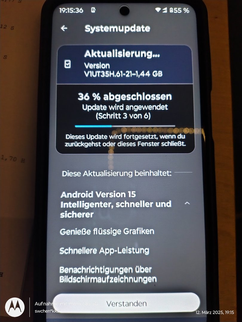 Ich wollte nur erfreut mitteilen, daß mein moto g55 per OAT gerade Android 15 erhält.