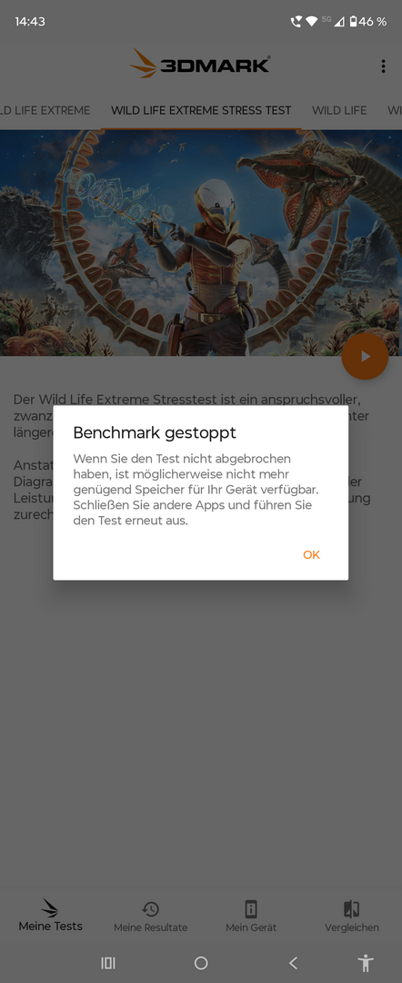 Im 3D Mark Wild Life Extreme Stress Test war leider kein Ergebnis ermittelbar, denn der Benchmark war auf dem RAZR 60 Ultra aufgrund fehlender Systemressourcen / zu hoher Temperatur des Geräts nicht abbildbar; auch nicht nach mehreren Versuchen. Das traf sowohl bei einem „Kaltstart“ des Benchmarks als auch bei einem Durchlauf bspw. im Anschluss an einen AnTuTu-Run zu. Beim Kaltstart war max. Durchgang 10 von 20 im 3D Mark erreichbar, dann beendete das Gerät die App bei einer maximalen Temperatur von ca. 61°C bei mehreren Komponenten. Das Gerät wurde hierbei auch tatsächlich sehr unangenehm warm, vor allem im oberen Glas-Teil.