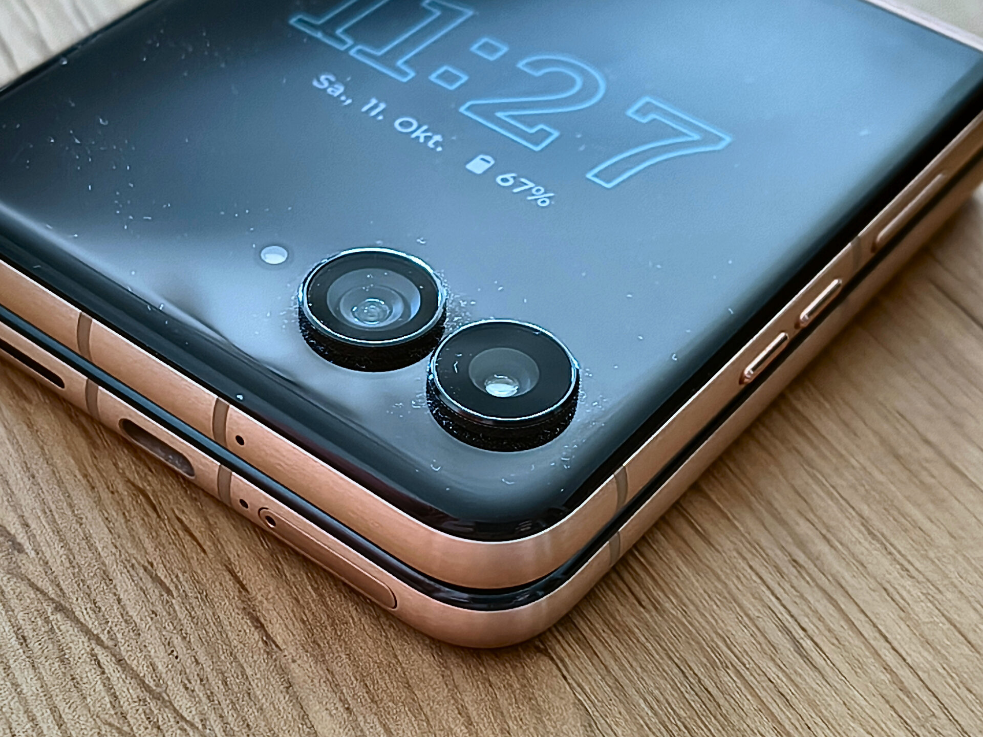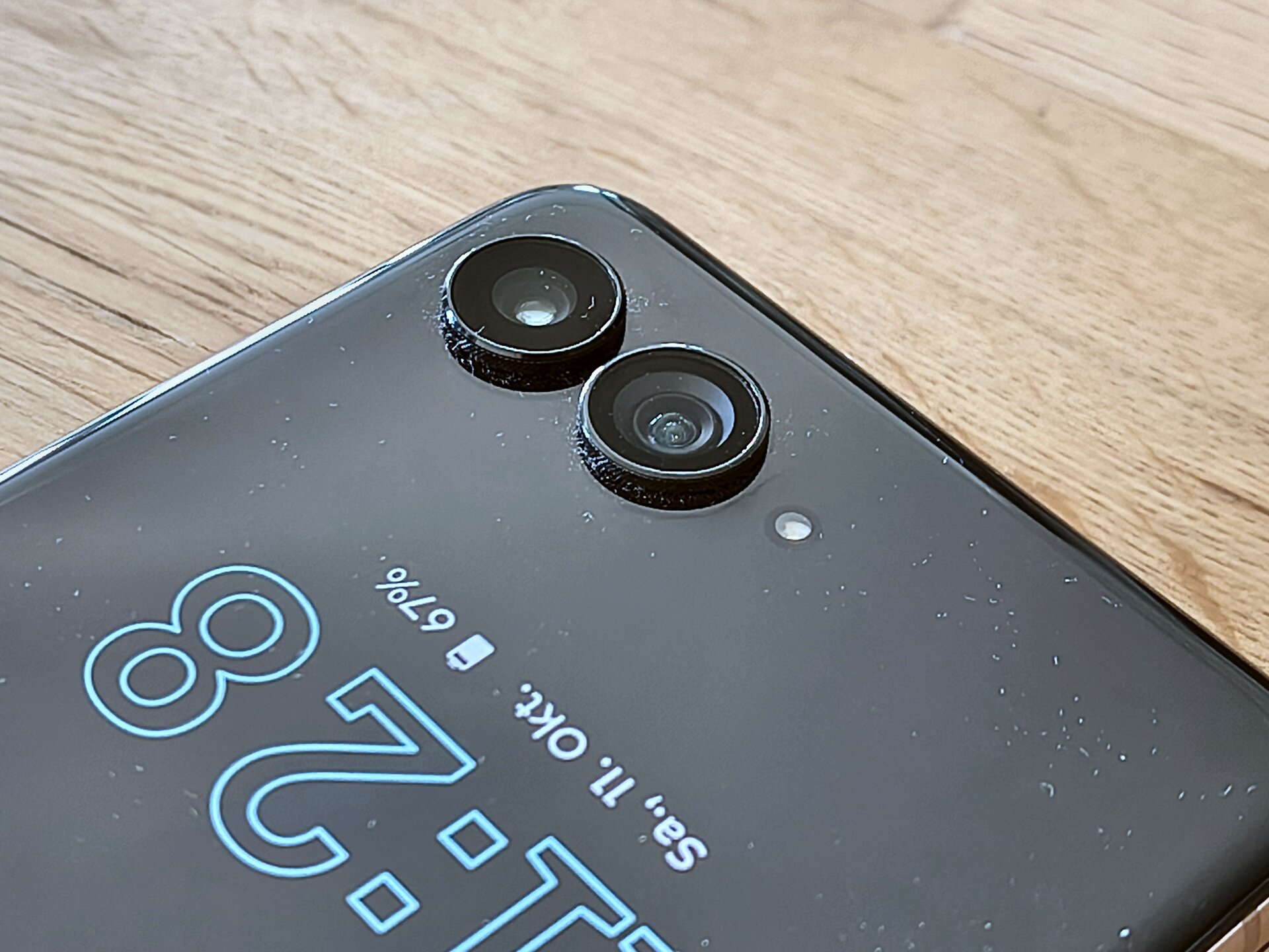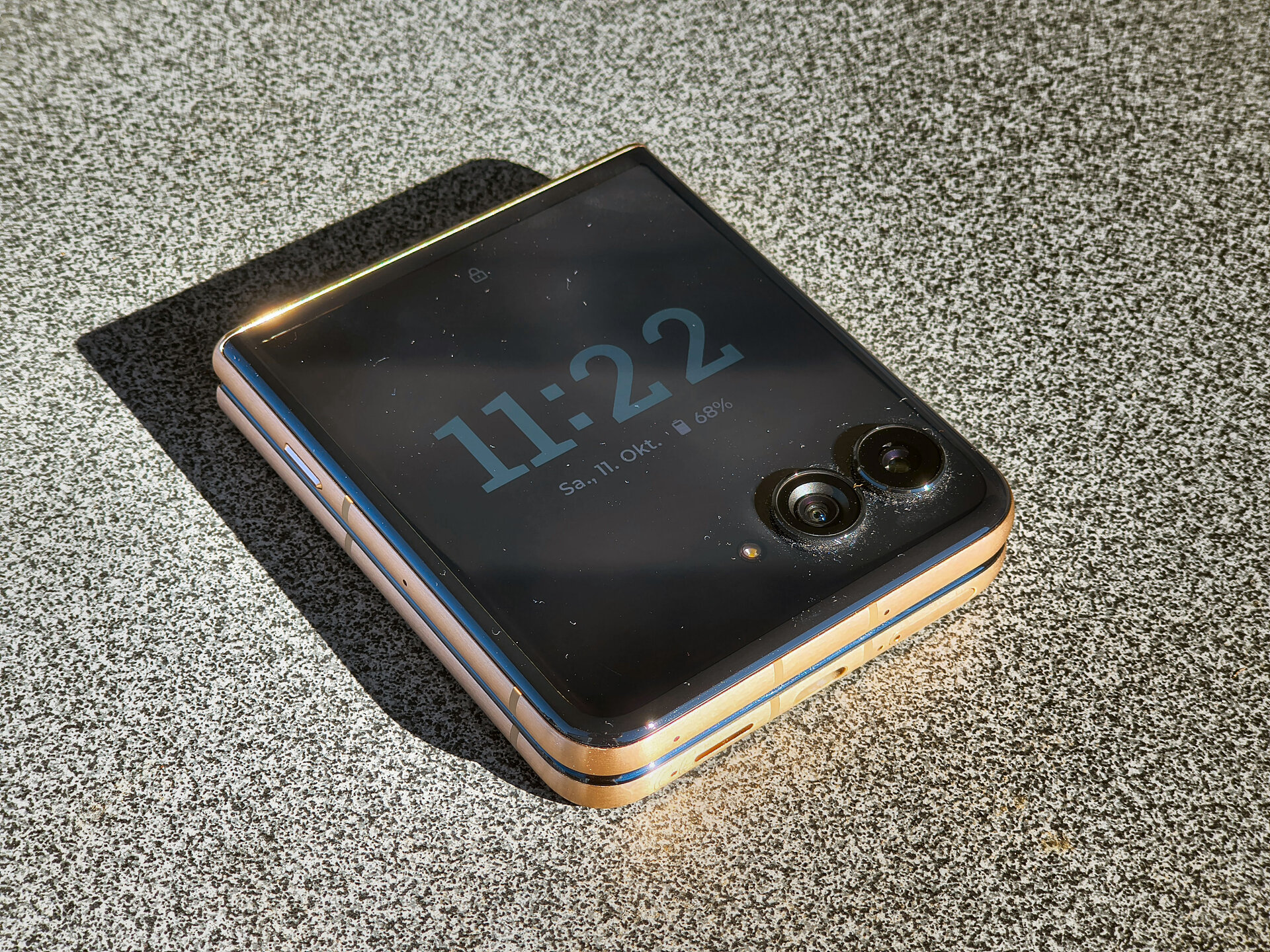 ) ein Tele-Objektiv beim RAZR 60 Ultra gesehen hätte, macht das Setup aus 50 MPX Hauptkamera mit 50 MPX UWW-Kamera Spaß und – das Wichtigste – generiert teils hervorragende Ergebnisse: Leuchtende und dennoch natürliche Farben, schnelle Fokussierung, beide rückseitige Kameras mit Autofokus und eine UWW-Kamera mit Makro-Funktion und ebenfalls qualitativ hochwertigen Ergebnissen. Wer viel mit seinem Smartphone zoomen möchte, findet beim RAZR 60 Ultra allerdings nach max. 2x digitalem Zoom seine Grenzen. - Das Außendisplay des Vorgängers war schon sehr gut – Motorola hat nur an den notwendigen Stellen Hand angelegt und bspw. die max. Helligkeit noch weiter erhöht. Ansonsten behält das Außendisplay seine Stärken: Quasi vollständige Bedienbarkeit des Smartphones ausschließlich über dieses Display – stark!