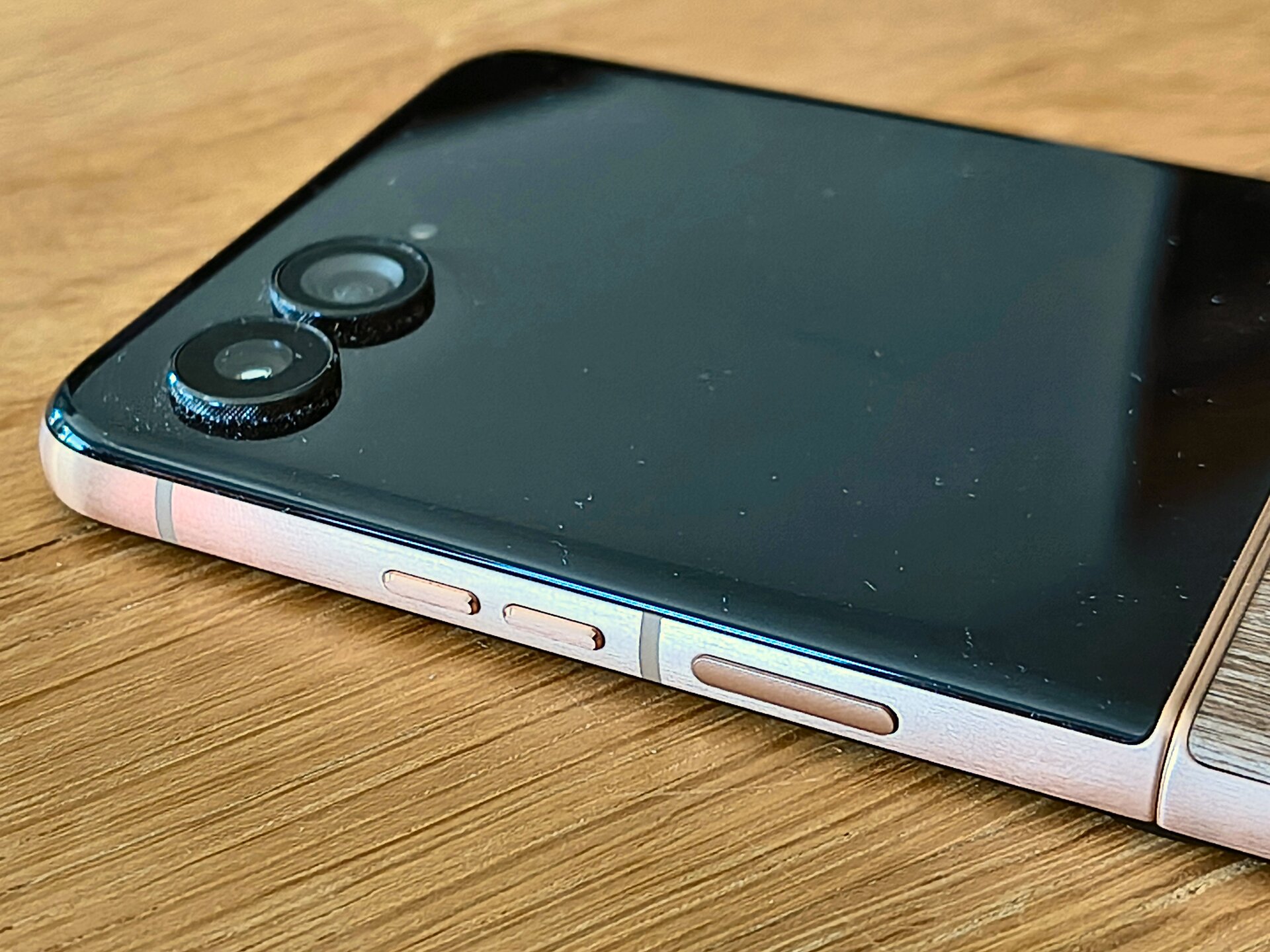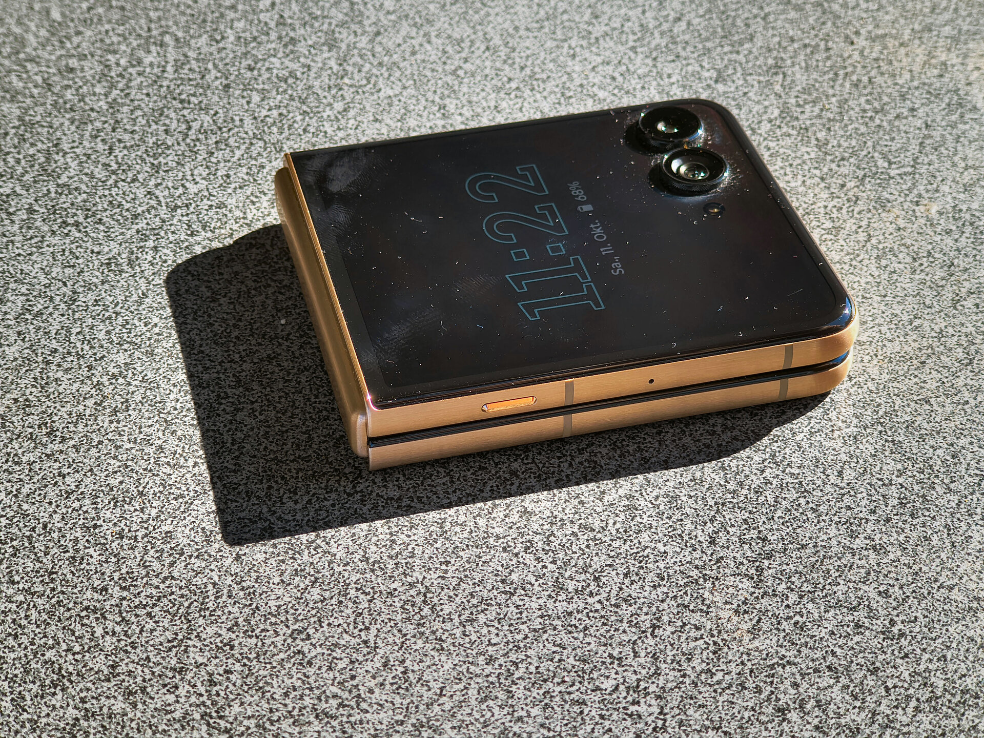 Wenn wir gerade beim Power-Button sind: Die Platzierung ist 1:1 identisch mit dem letztjährigen RAZR 50 Ultra. Damit einhergehend sind die Vor- und Nachteile auch wieder dieselben: Im aufgeklappten Zustand des Geräts befindet sich der Button eigentlich zu weit oben, sodass ein Großteil der Nutzer wohl zwingend immer Nachfassen bzw. Umgreifen muss. Wer das nicht möchte, muss alternativ ggf. die Gesichtsentsperrung des Geräts nutzen. Im zugeklappten Zustand sieht das dann aber wieder gänzlich anders aus; denn durch die ursprünglich suboptimale Positionierung des Buttons wird auf einmal ein perfekt platzierter Fingerprinter – mit großen Händen lässt sich das Phone so bequem „umschließen“ und der Button kann ohne Verrenkungen oder Dehnübungen erreicht werden. Die übrige Bedienung hinsichtlich Hard- und Software läuft beim RAZR 60 Ultra völlig unauffällig und problemlos. Alles Andere wäre bei dieser Hardware-Ausstattung aber auch nicht zu argumentieren, immerhin hat das Gerät ordentlich Power unter der Haube. Selbst die von vielen Mittelklassegeräten bekannt langsame Kamera-App macht hier eine gute Figur – kennt man so gar nicht von Motorola. Schade, dass man das mit etwas Optimierung nicht auch in den unteren Geräteklassen hinbekommt…