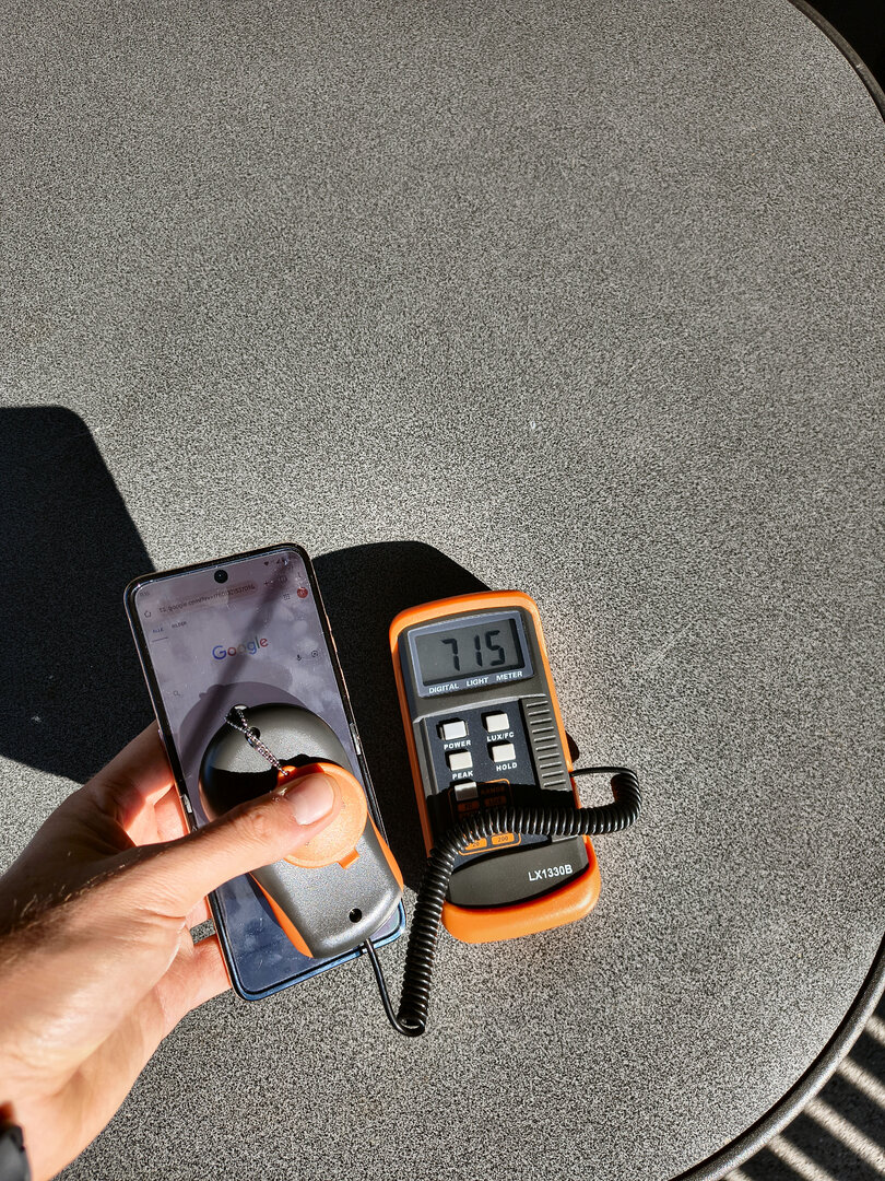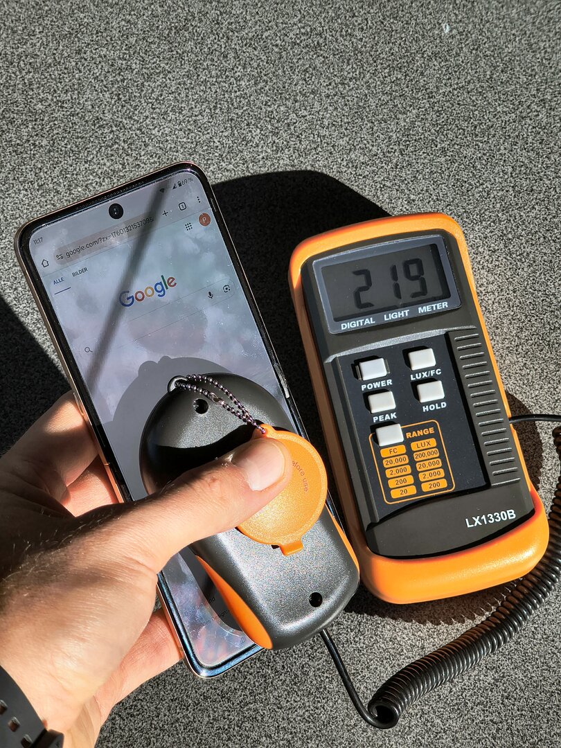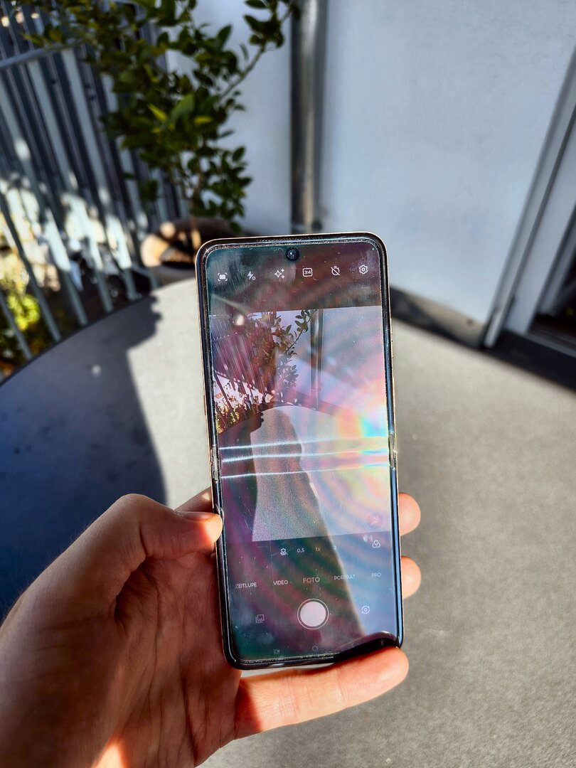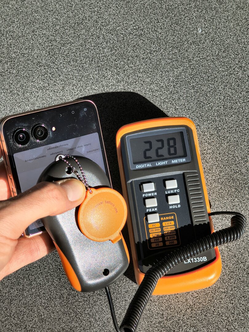 Doch was leistet das Hauptdisplay in der Praxis? Beachtliches, würde ich sagen. Beim Vorgänger hatte Motorola die Spitzenhelligkeit noch mit 3.000 Nits angegeben – zur Erinnerung: Beim RAZR 60 Ultra beruft man sich auf 4.500 Nits. Die damals beim RAZR 50 Ultra gemessenen Helligkeitswerte bei mir lagen im Modus mit automatischer Helligkeit bei knapp 1.800 LUX und mit manueller, maximaler Helligkeit bei knapp 600 LUX. Beim RAZR 60 Ultra komme ich bei meinen Messungen im Automatikmodus auf knapp 2.220 LUX, im manuellen Modus liefert das Display noch knapp 720 LUX ab. Für den Alltag bedeutet das, dass der Nutzer eigentlich selbst bei direkter Sonneneinstrahlung nahezu nie Probleme damit haben sollte, die Displayinhalte wahrzunehmen. Klar – je nach Blickwinkel kommt vielleicht mal hier oder da eine Spiegelung auf dem Display zum Vorschein – aber dieses Problem lässt sich mit minimaler Korrektur der Ausrichtung des Smartphones beheben.