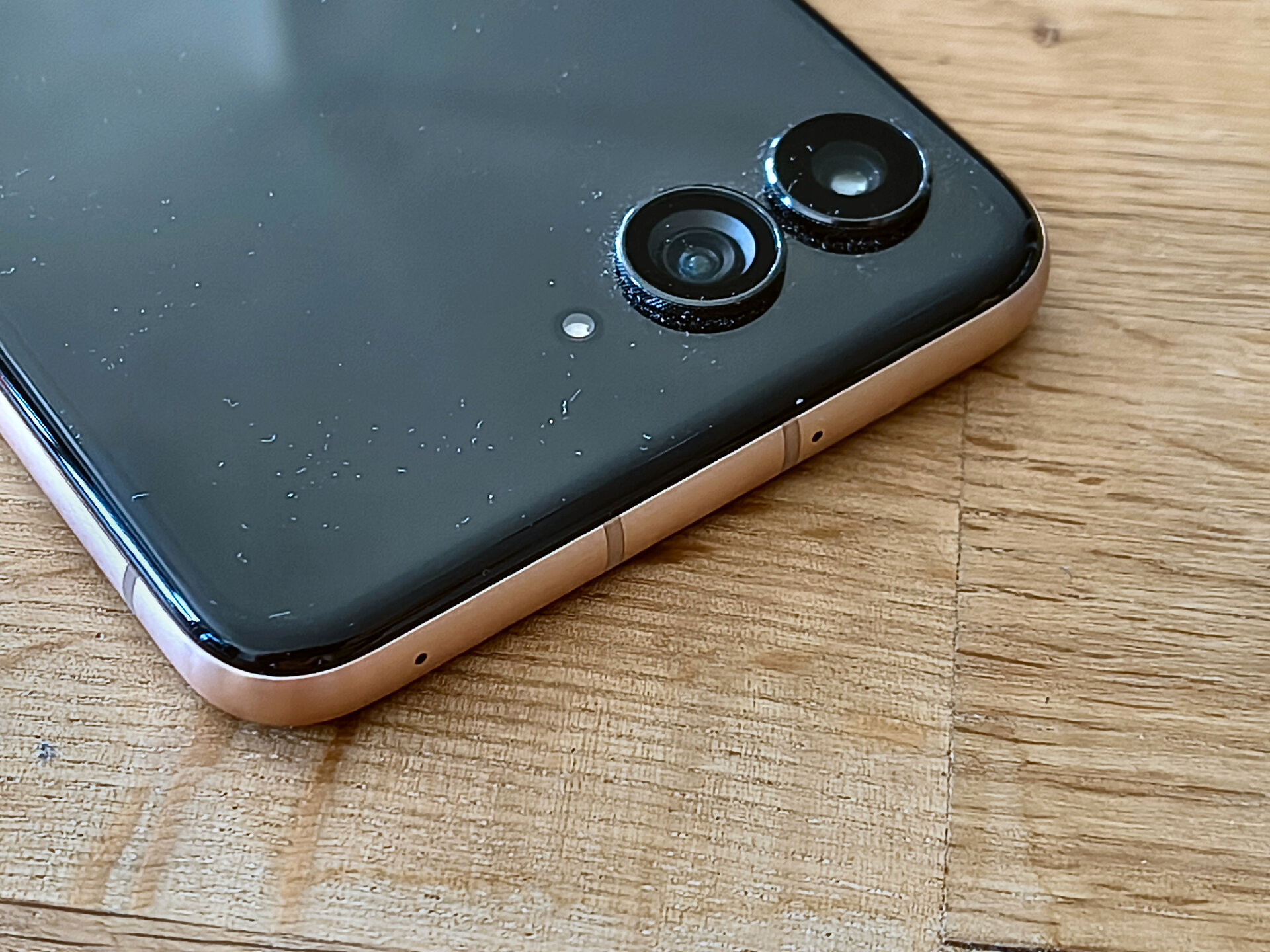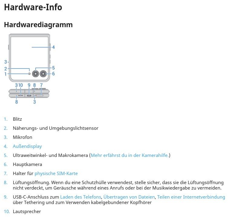 Übrigens spielt das Thema "Staub" bzw. Schmutz / Dreck im Allgemeinen sowieso noch ein größeres Thema; denn so ein klappbares Display hatte und hat schon immer seine Eigenheiten. Eine besondere Pflege bzw. Achtsamkeit ist hier unverzichtbar – das machen auch diverse Hinweise in der Verpackung bzw. der Software des Geräts (nach der Ersteinrichtung bzw. innerhalb der moto-eigenen Apps) deutlich. Motorola weist explizit darauf hin, dass das Gerät nicht in Umgebungen mit hoher Staubwahrscheinlichkeit genutzt werden sollte bzw. dann eben eine noch intensivere Pflege benötigt als ohnehin schon. Staub kann sich sowohl auf das knickbare Display als auch auf die Scharniere des Klappmechanismus negativ auswirken und deren Funktion / Langlebigkeit beeinträchtigen!