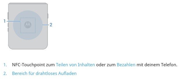 Wer sein Gerät drahtlos laden möchte, hat die Möglichkeit, dies mit bis zu 30W über kompatible Geräte zu tun. Im Gegenzug unterstützt das RAZR 60 Ultra kabelgebundenes Reverse Charging mit bis zu 5W um andere Verbraucher mit Energie zu füttern.