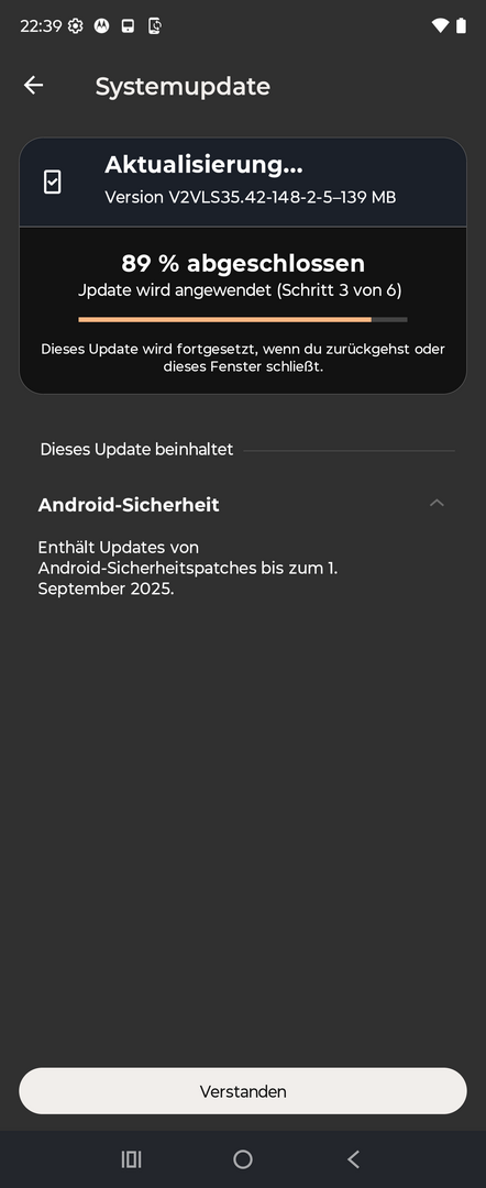 In Sachen "Sicherheit" stattet Motorola das RAZR 60 Ultra mit aktuell gängigen Standards aus, ohne hierbei irgendwelche Ausreißer ins Positive oder Negative zu vollziehen. Die "Basis" der Sicherheit bilden die im zweimonatlichen Intervall von Motorola bereitgestellten Sicherheitspatches, welche bis zum heutigen Tag auch immer rechtzeitig ausgerollt wurden. Darüber hinaus (und im Alltag wesentlich relevanter) ist das RAZR 60 Ultra mit den gängigsten Funktionen wie beispielsweise einem Fingerabdruckscanner und einer 2D Gesichtserkennung ausgestattet. Der Fingerabdruckscanner wird dabei über den rechts am Gerät befindlichen Power-Button gelöst, es kommt also keine In-Display-Lösung zum Einsatz, wie man das vom Großteil der regulären Smartphones heute so kennt. Das Einscannen des Fingerabdruckes dauert verhältnismäßig lange (positiv formuliert: verläuft sehr gründlich mit knapp 20 Scans zur Konfiguration) sorgt aber im Alltag dafür, dass die Erkennungsrate und -schnelligkeit absolut top performt. Im geöffneten Zustand ist der Fingerabdruckscanner zwar weiterhin etwas zu hoch platziert, sodass man hier am Gerät unter Umständen nochmal umgreifen muss – dafür passt die Platzierung im geschlossenen Zustand aber wieder wie die Faust aufs Auge. Und ehrlich gesagt ist mir das so auch wichtiger und richtiger vom Lösungsansatz her: Entsperren kann ich das Gerät nämlich quasi immer im geschlossenen Zustand – gibt es einen Anlass das Gerät zu öffnen, kann ich es immer noch aufklappen. Und dann ist es ja bereits entsperrt.