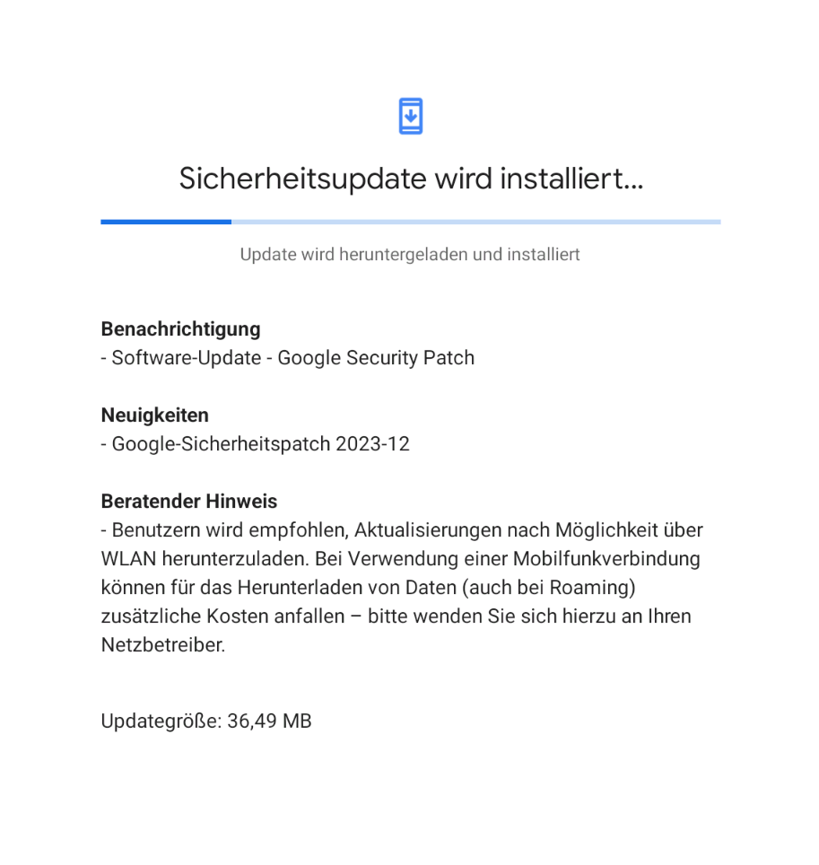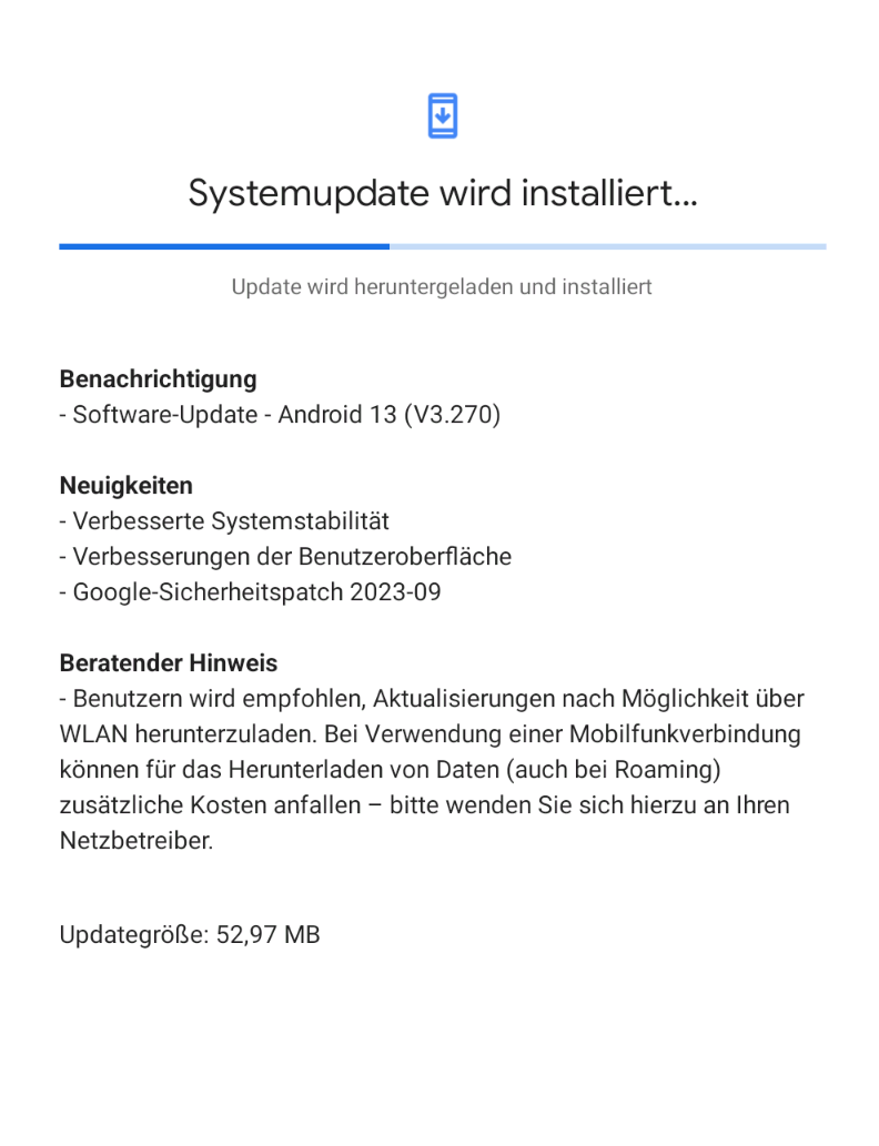 Hmm, heute kam nur der übliche monatliche Google Sicherheitspatch (05.08.2023) rein, keine Spur von Android 13 …