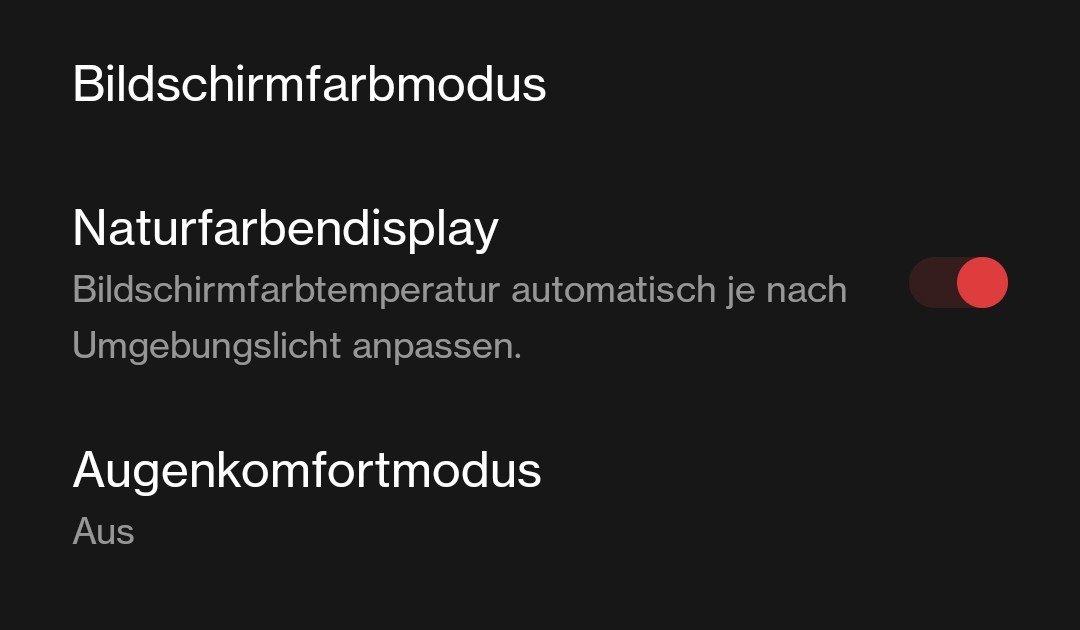 Also bei meinem nothing aktiviert sich je nach Umgebungshelligkeit automatisch eine Art Blaulichtfilter, kann das aber nirgends ausschalten