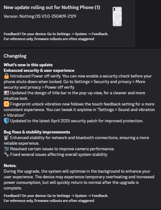 FirmwareNothing OS Version 3.0-250409-2129für das Nothing Phone (1)