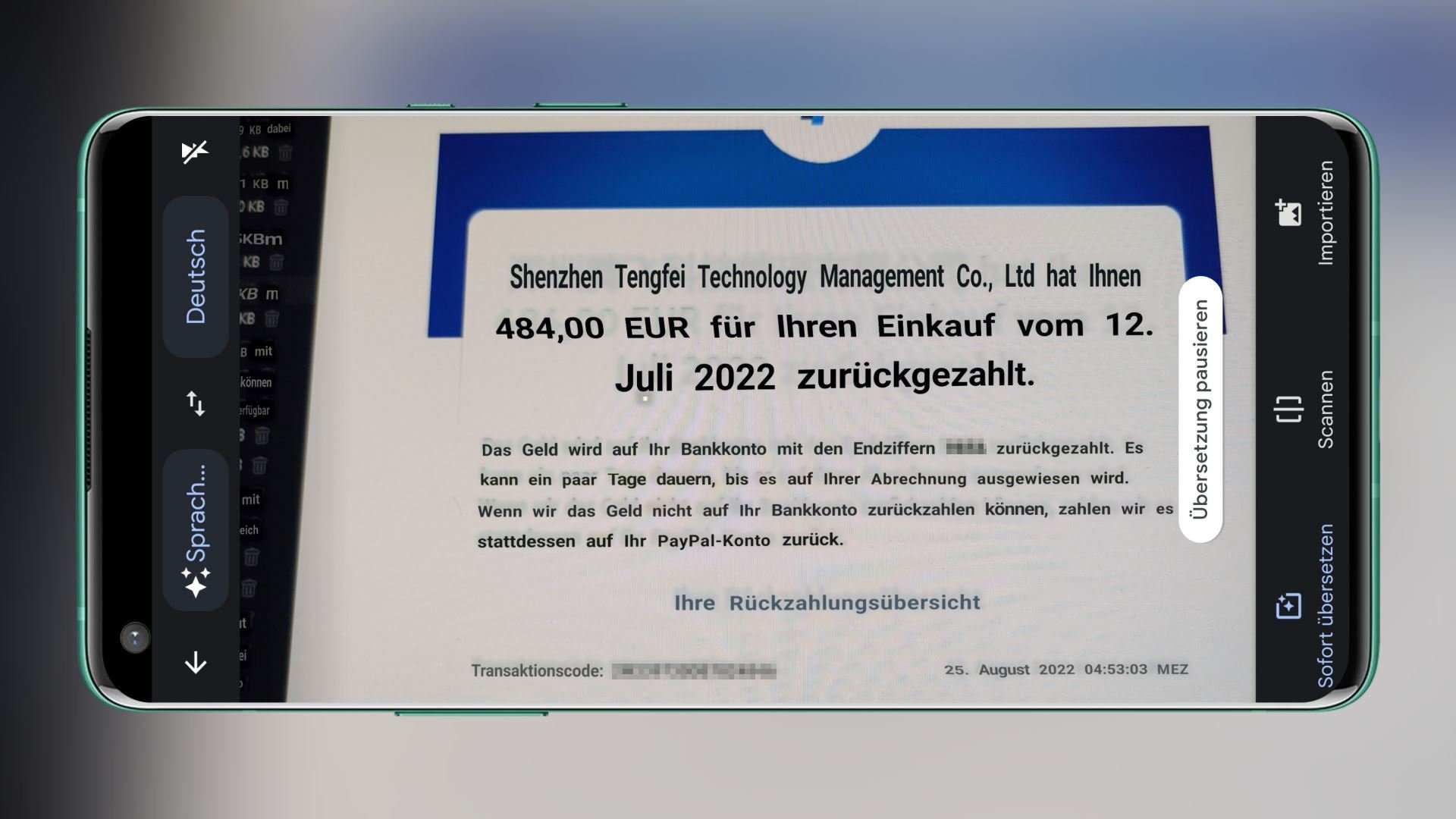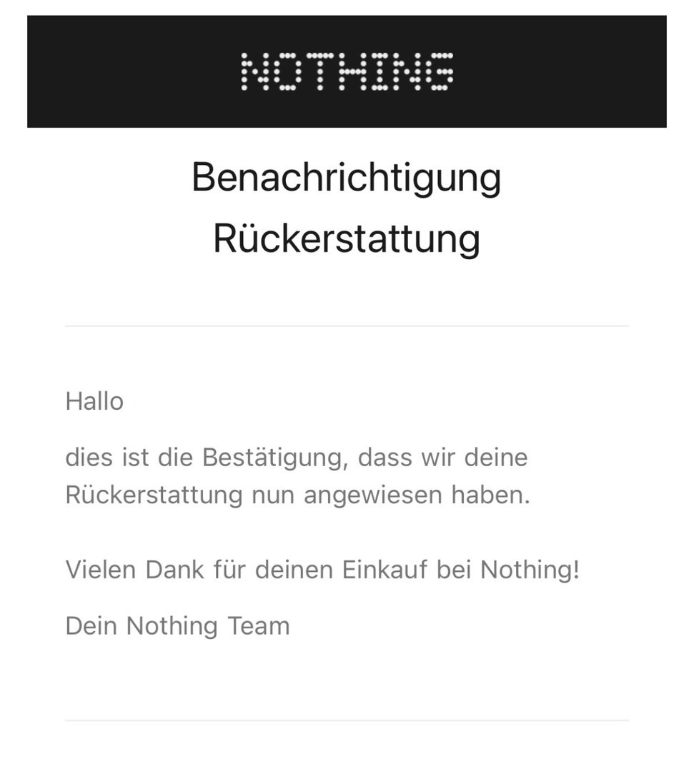 Ich habe mich an PayPal gewendet, die habe mir eine Adresse in Hongkong geschickt, an die soll ich das Phone (1) senden. Die Versandkosten soll ich selber tragen und die Rückerstattung bekomme ich nur wenn Nothing den Empfang bestätigen. Ich warte jetzt erstmal auf die Antwort vom Nothing Support. Ich habe schon mit Mark, Steffan und Eva geschrieben, aber irgendwann hat keiner mehr geantwortet.