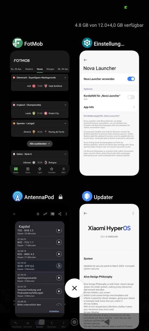 Ich habe heute auf meinem Pocp F5 das HyperOS Update 2.0.1.0 erhalten und installiert, ich habe aktuell folgendes Problem in der Übersicht (siehe screenshot) der zuletzt geöffneten Apps, sobald ich das Vorschaubild einer App anklicke passiert nichts....