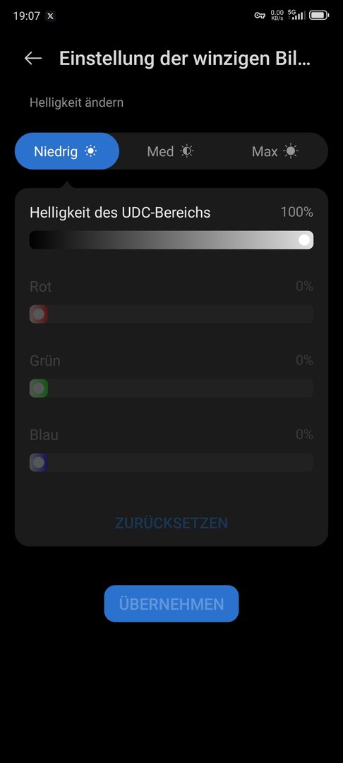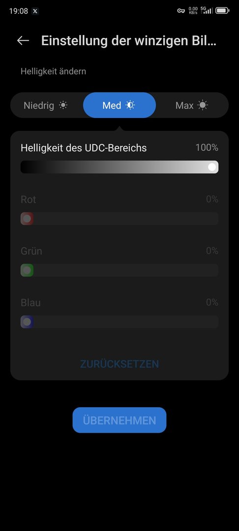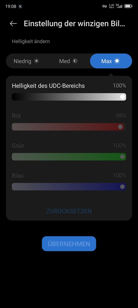 Unter Display gibts den Punkt der Helligkeit kleiner Bereich
