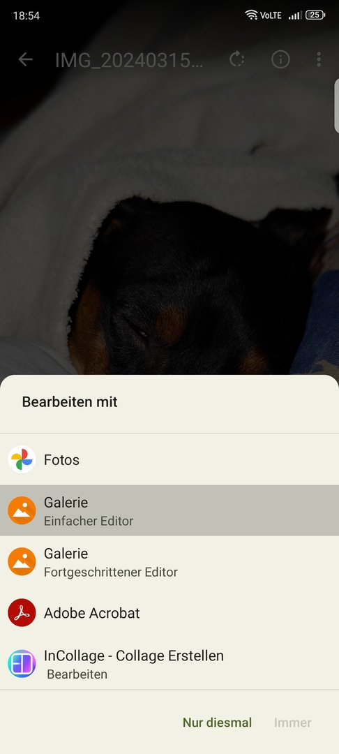 ich habe folgendes Problem beim bearbeiten von Fotos, was bei verschiedenen installierten Gallerie-Apps aufgetreten ist. Momentan auch bei Schlichte Gallerie Pro, man kann einfach nicht "immer" auswählen wenn man ein Foto bearbeiten will, sondern muss "nur diesmal" auswählen - das eben jedes Mal.
