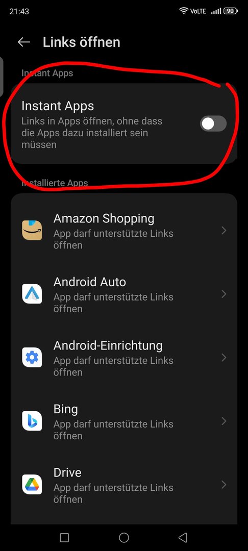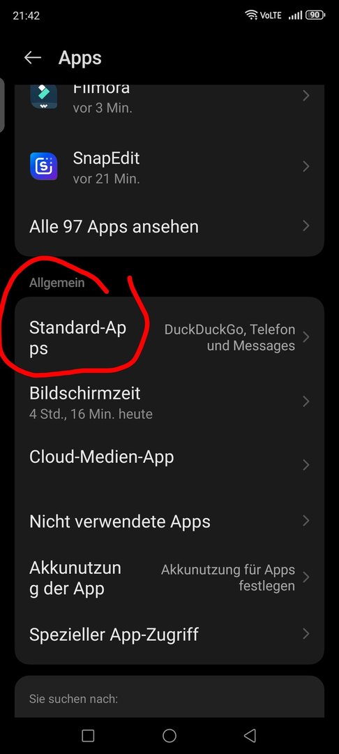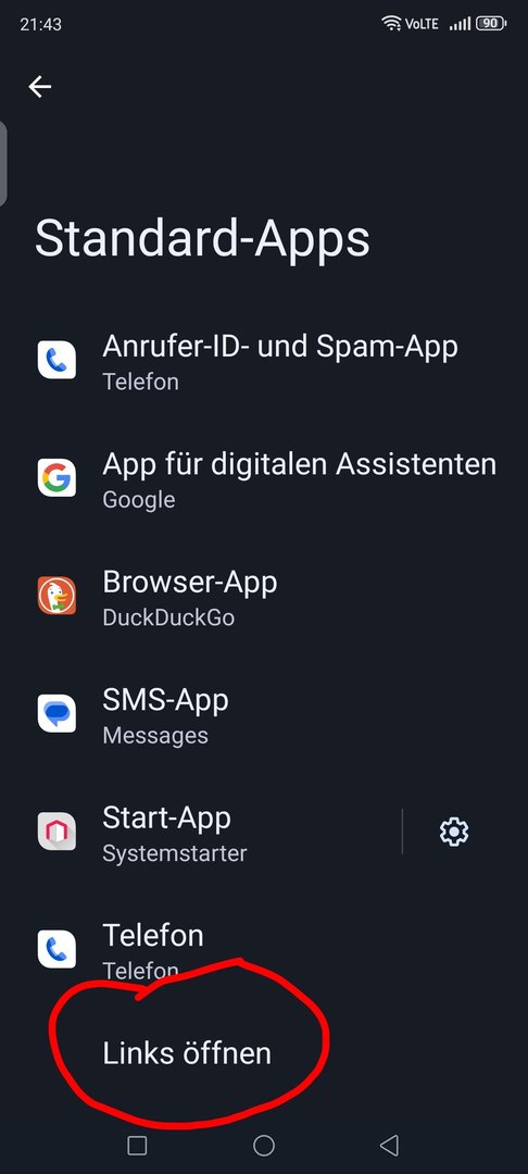 Also: Wie kann man es im System einstellen, dass diverse Links/Aktionen auch andere Apps nutzen können/müssen, wenn die Standard-Google-Apps nicht zur Verfügung stehen?