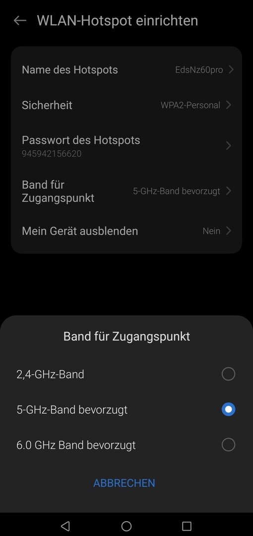 Hallo kann man beim nubia z60 beim Hotspot nicht auf 5 ghz umstellen? Bekomme nur 2, 4ghz