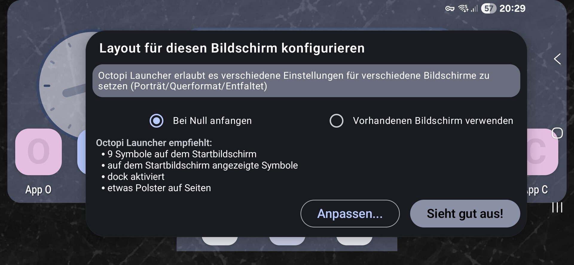 @User unknown Normalerweise wirst du beim ersten Drehen gefragt, was du möchtest: Vorhandenen Homescreen verwenden oder neu beginnen. Siehe Screenshot, hab ich gerade am Handy gemacht. Ist am Tablet aber auch.