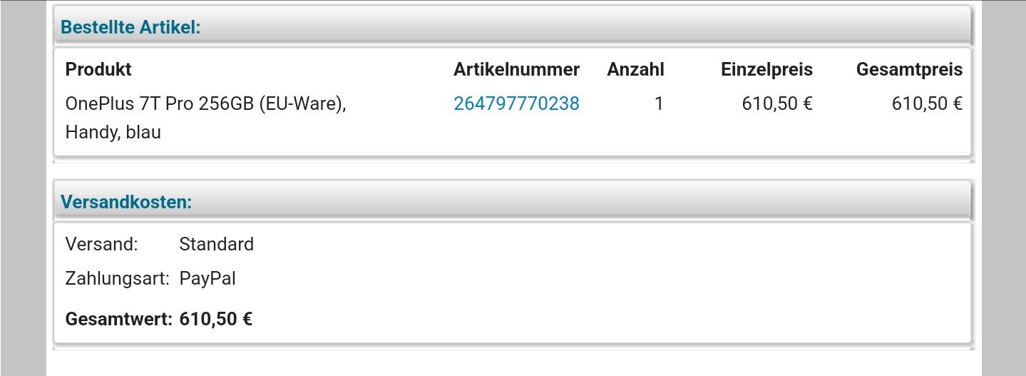 das stimmt nicht ganz. Hab ja auch das OnePlus 7 Pro und benutze es noch immer als mein Handy. Ich habs im Mai 2019 gekauft und da war ungefähr der Verkaufsstart. Hat damals 709 Euro bei Otto gekostet, ich bekam aber 35 Euro Rabatt.flatexercise schrieb:Hatte mir damals zum verkaufsstart bei Alternate das 7T Pro gekauft.. Und zum Spaß mal die Rechnung rausgekramt.. Das war August 2020...
