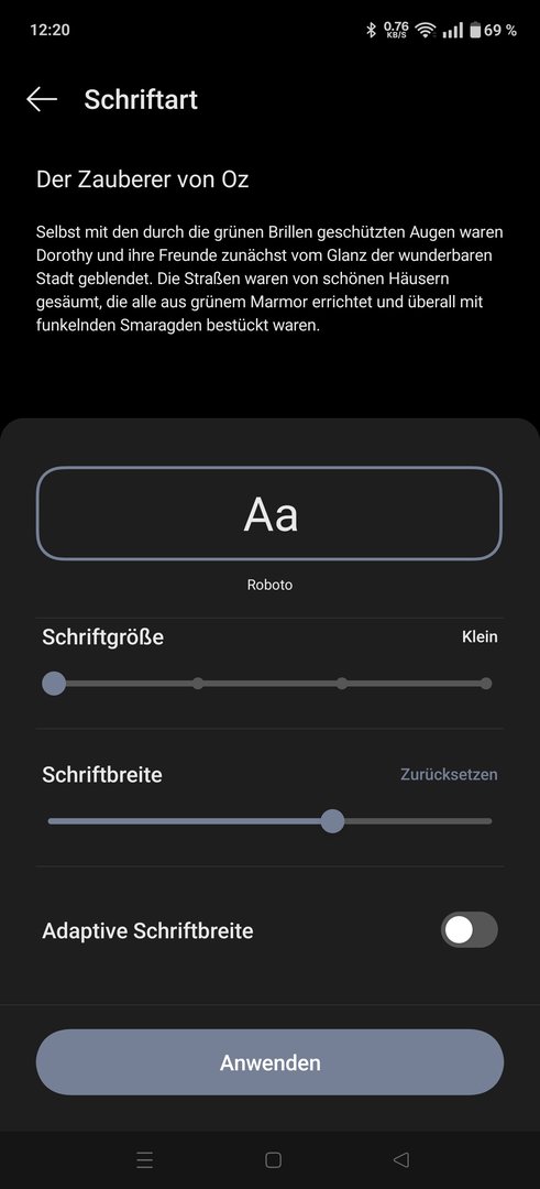 Darunter war ein Menü mit Schriftartbreite und dazugehörigen Regler und darunter noch die Option zur adaptive Schriftartbreite.