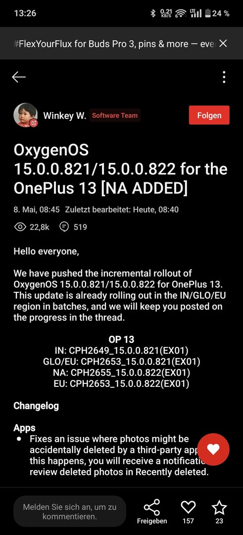 Bei mir läuft die 821 ganz normal