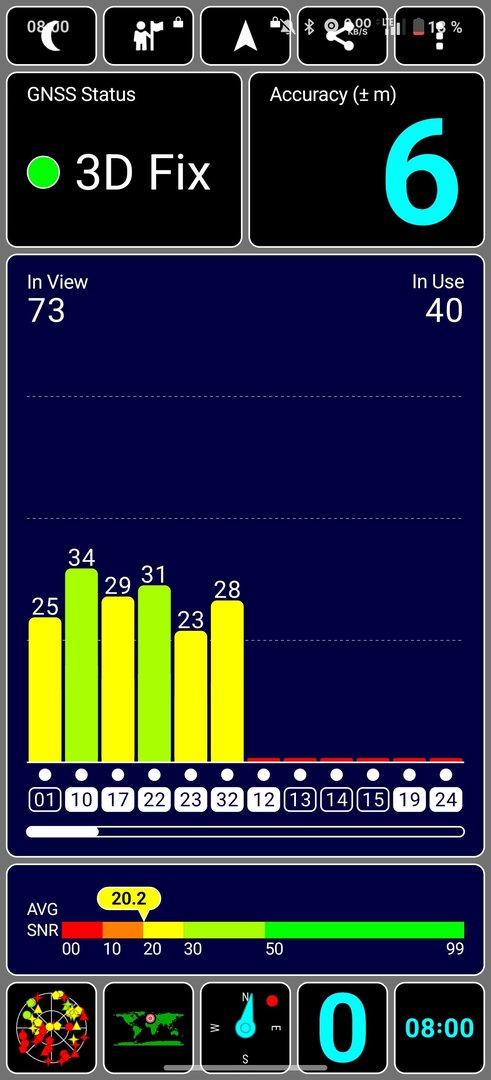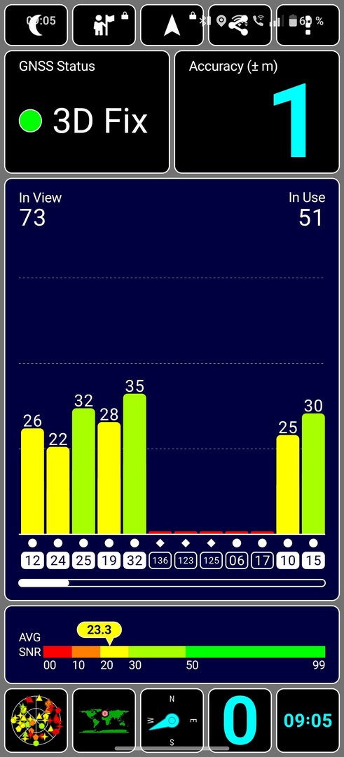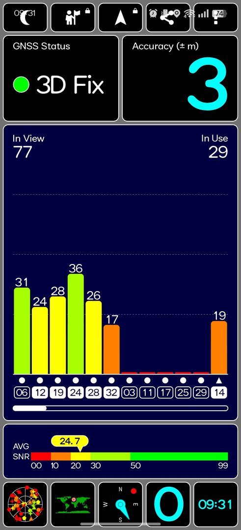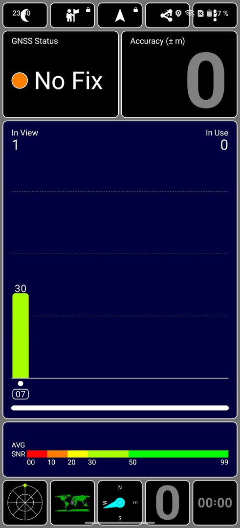 Ich habe im Innenraum ausprobiert, wo mein altes Gerät wie oben zu sehen ist einen Fix bekommt und das OP13 nur einen Satelliten sieht.