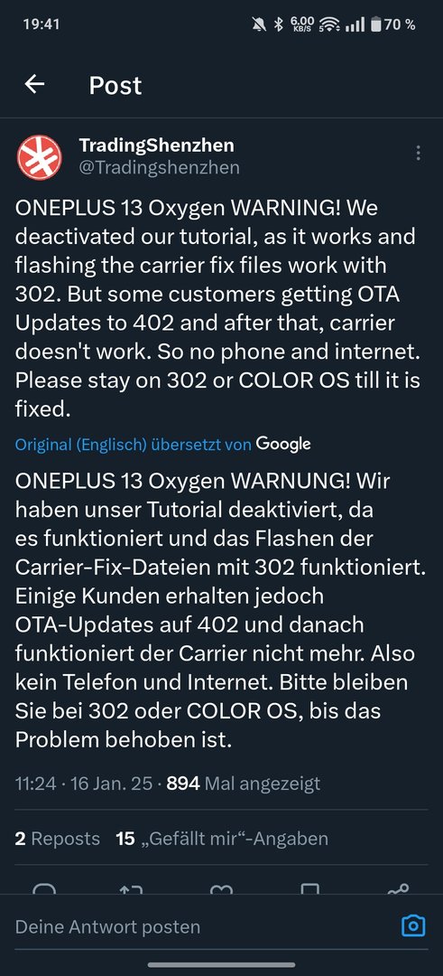 Ein Träumchen. Habe schon stark befürchtet, dass ich nochmal bei Null starten darf. Ist eben leider so. Sobald irgendwo steht "Unlock/Lock Bootloader um dies/das/jenes zu tun" kann man direkt diesen Emoji