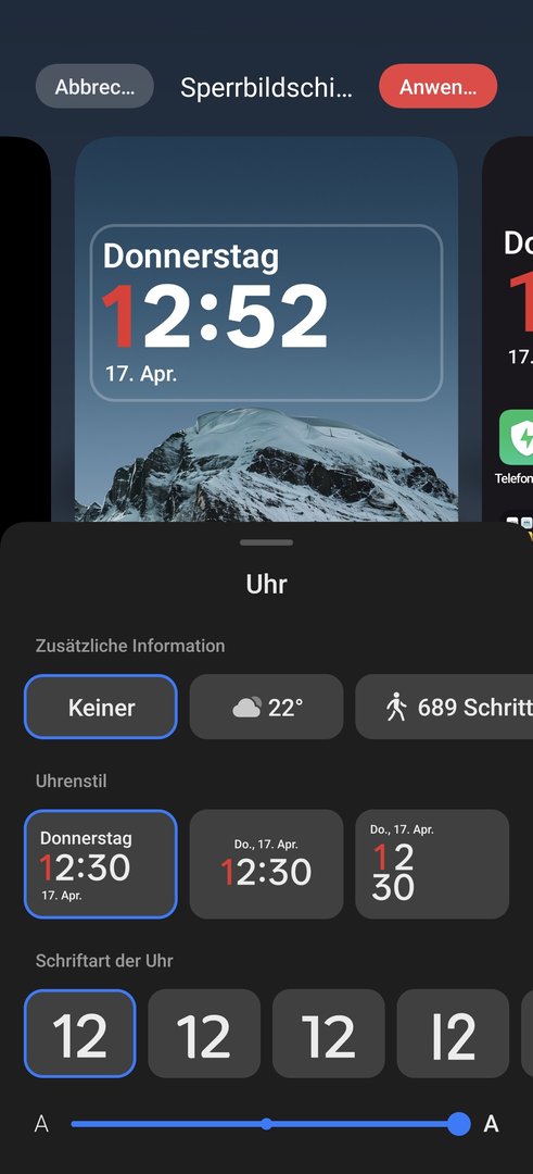 ich versuche gerade die Einstellungen für das Wettersymbol an der Uhrzeit auf dem Sperrbildschirm zu finden, aber bin leider erfolglos.