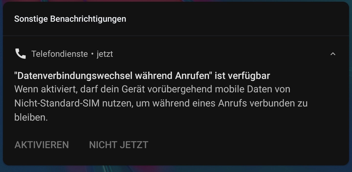 Die Funktion, die Datensimkarte bei laufendem Gespräch automatisch umzuschalten, ist echt praktisch. Hab das seit dem Umstieg von Huawei oft vermisst...