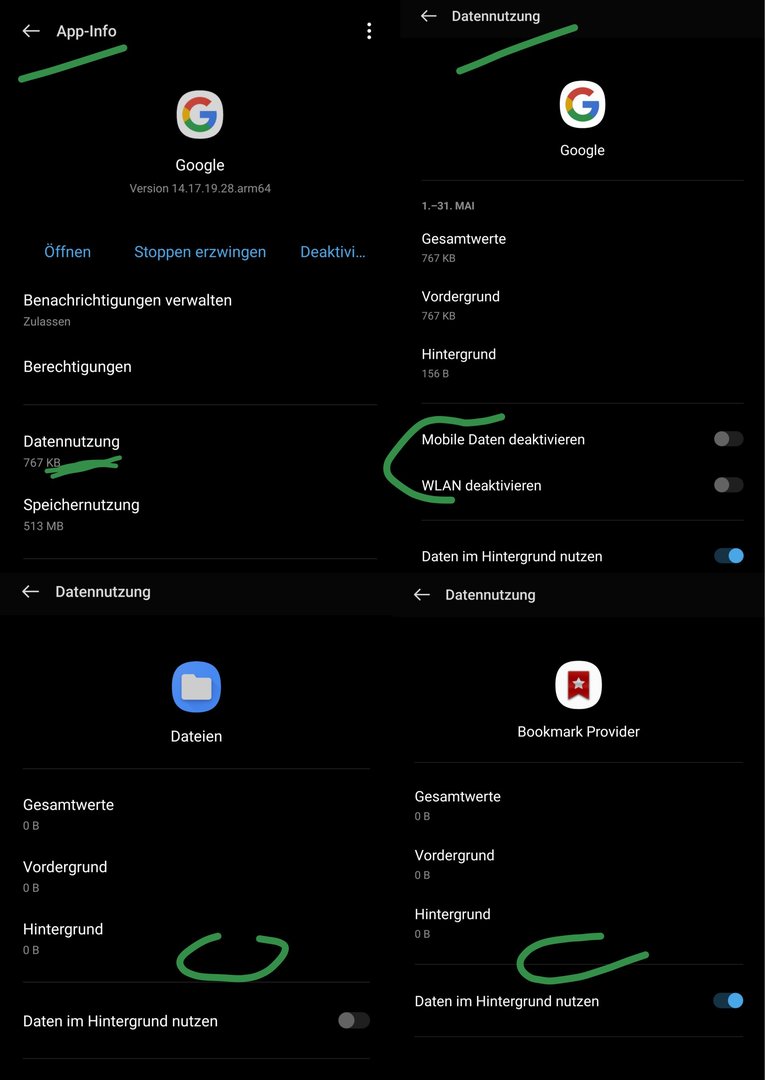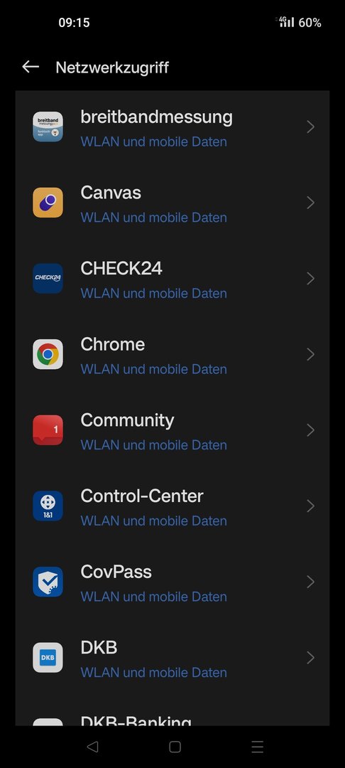 wie kann ich beim OP 8T, mit oxygen OS 11, mobile daten für bestimmte Apps deaktivieren?