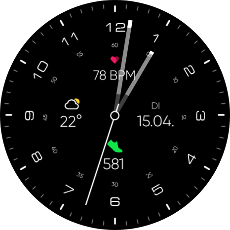 Hatte mal Lust auf was neues und hab dieses Watchface zufällig entdeckt. Ich mag es schlicht und paßt auch ganz gut zu dem Edelstahl Gehäuse mit schwarzem Band.
