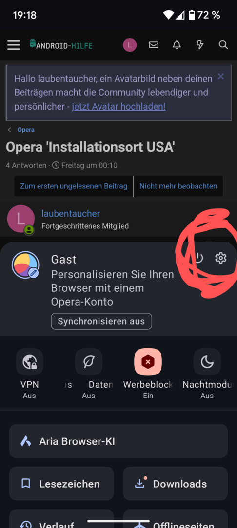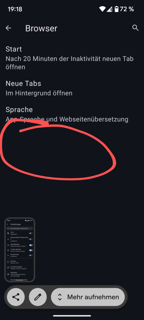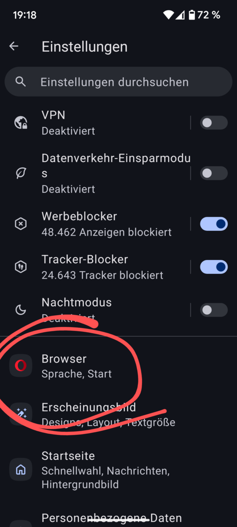 Gestern habe ich auf meinem Pixel7 Opera/Optionen/Browser