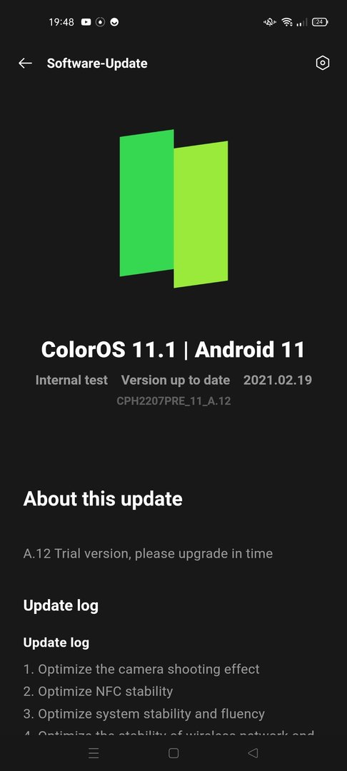 Nach langer Suche habe ich nun rausgefunden dass man mir ein Testgerät untergejubelt hat, das eine interne Beta von ColorOS drauf hat und keine weiteren Updates zulässt. Diese Geräte wurden von Oppo an Tester geschickt, und dürften nicht in den Handel geraten. Mein Pech.