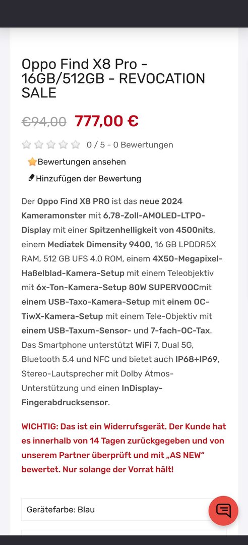 Guck mal 2 Beiträge über deinem, zweites BildVinzent schrieb:Mittlerweile gibt es bei tradingshenzen das X8 Pro schon als Rückläufer für 767 € in der 16/512 Variante.