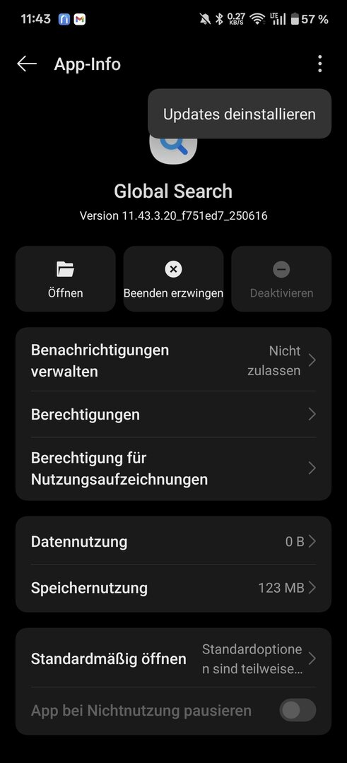 Sprich, wenn wir eine alte App Version der "Global Search" bekommen, könnten wir die eventuell drüber bügeln und dann klappt es wieder. Aber mit der neuen App Version funktioniert der Lösungsweg nicht mehr. Das liegt nicht direkt am Update des Betriebssystems sondern an der App Version die mit der neuen Version allerdings Standard ist. "Updates deinstallieren" ist nicht verfügbar.