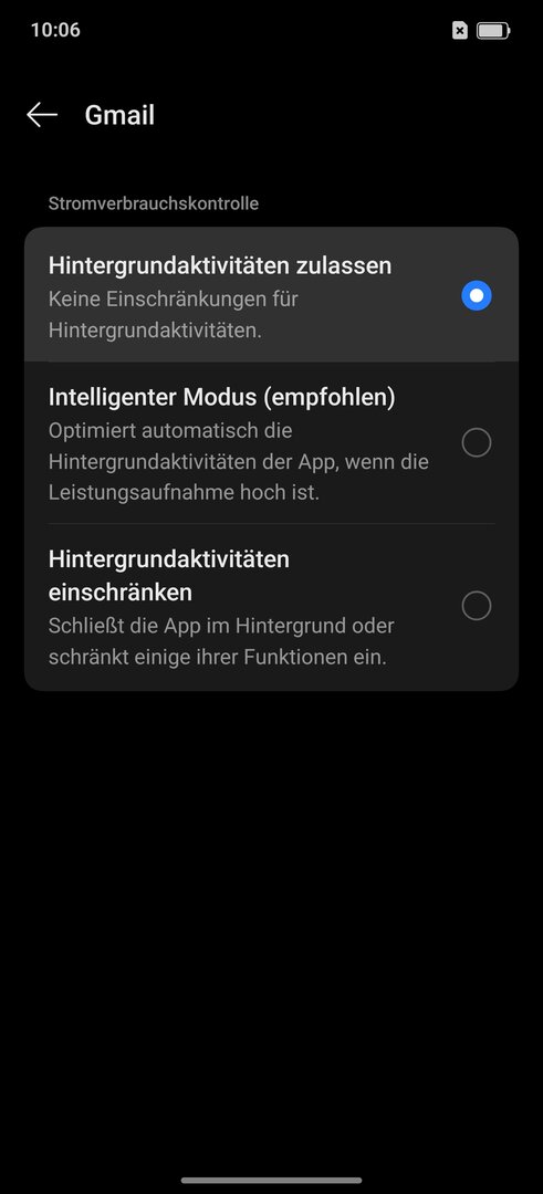 Zum Beispiel G-Mail, ich habe meines Erachtens alle Berechtigungen und in den Akkueinstellungen alles eingestellt.