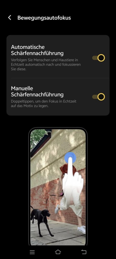 wie komme ich zur automatischen Schärfenachführung...finde ich in den Einstellungen nicht...