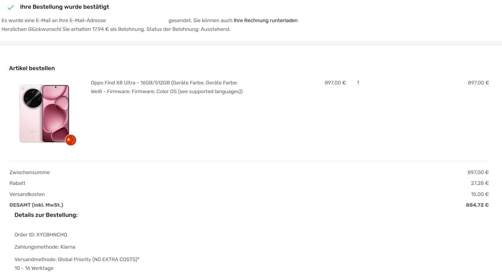 Original verschweißt habe ich es auch bekommen. Finde ich besser als wenn da jemand hektisch auspackt um schnell ein paar Apps zu installieren und dabei womöglich noch das Handy beschädigt. Außerdem ist es ab Werk dann auch besser verpackt als wenn es jemand einmal ausgepackt hat.CallistoJaro schrieb:Okay...ich habe Urlaub und habe nicht vor mich zu Bewegen außer zur Haustür wenn DHL klingelt um mein Oppo mir zu übergeben