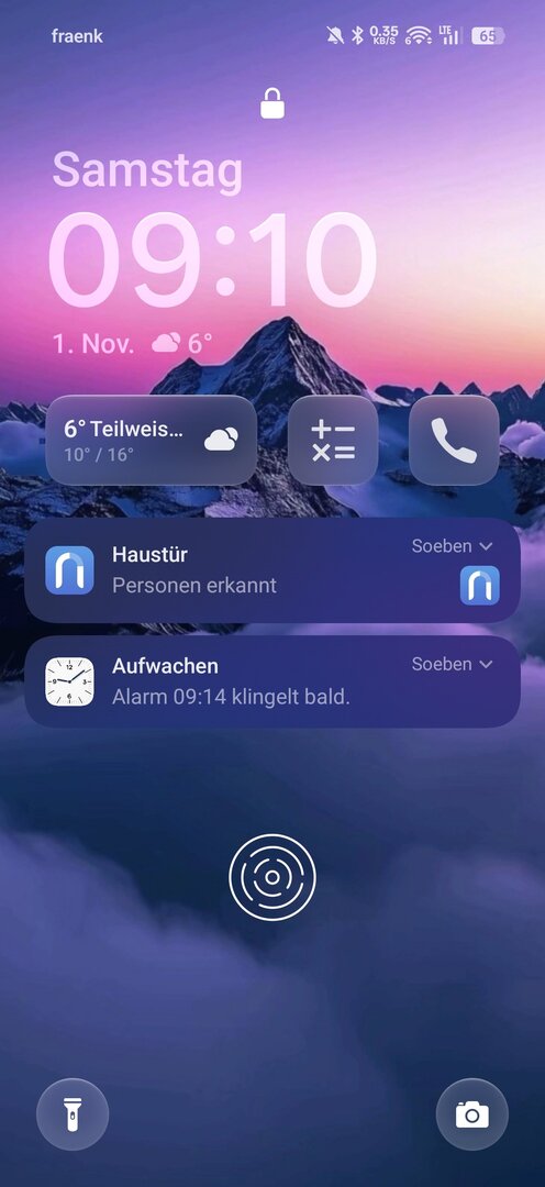 Einen aktiven Wecker sehe ich auch nur nach dem Entsperren in der Statusleiste.