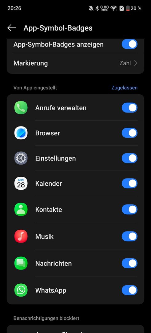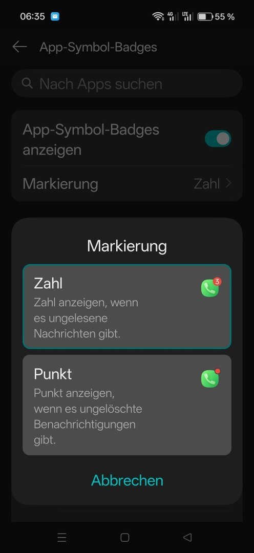 Hallo leute habe die CN version und das mit der Symbol anzeige klappt nicht wenn ich den punkt einstelle wird er permanet angezeigt,Zahl funktioniert gar nicht!! zb. bei FairEmail????