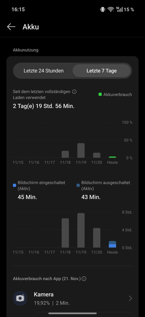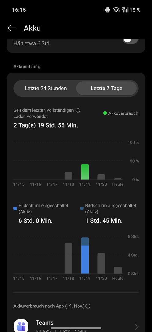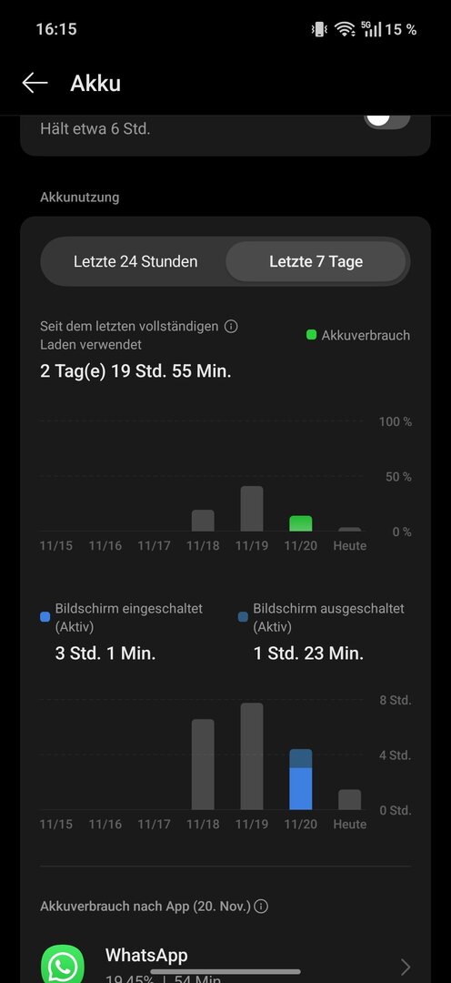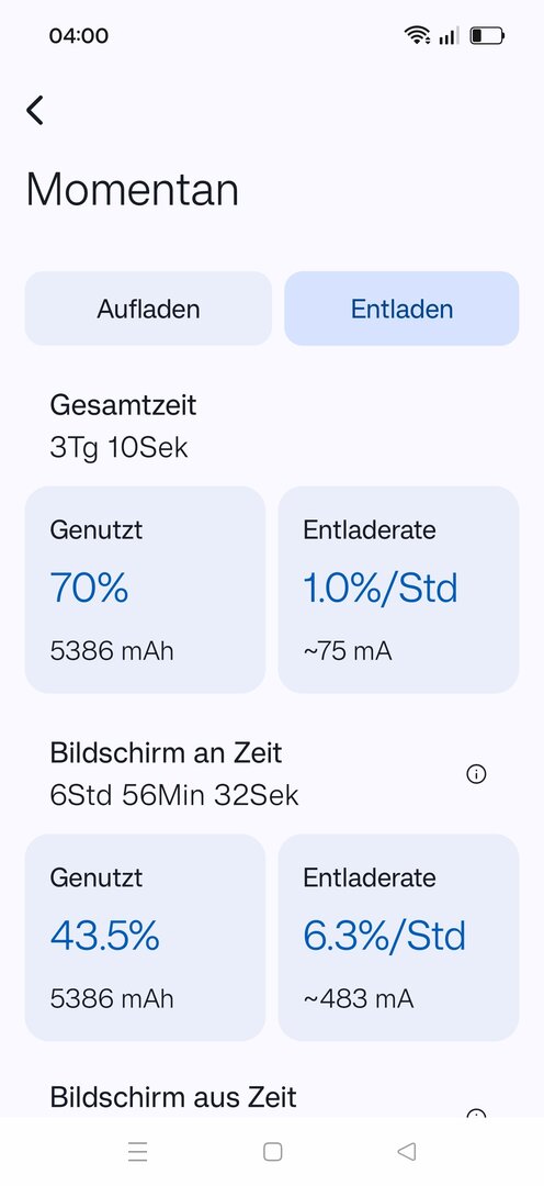 Damit bin ich auch zufrieden. Die drei Tage waren trotzdem nicht ganz wie ich es real nutzen würde. Werde den nächsten Lauf machen mit 4g und Bluetooth und WLAN an und Flug Modus komplett aus. So langsam bekomme ich aber ein Gefühl für den Verbrauch