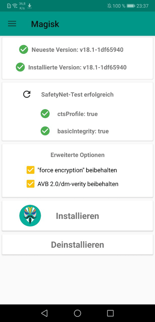 RECOVERY_RAMDIS_195 mit Magisk bearbeitet und anschließend geflasht.