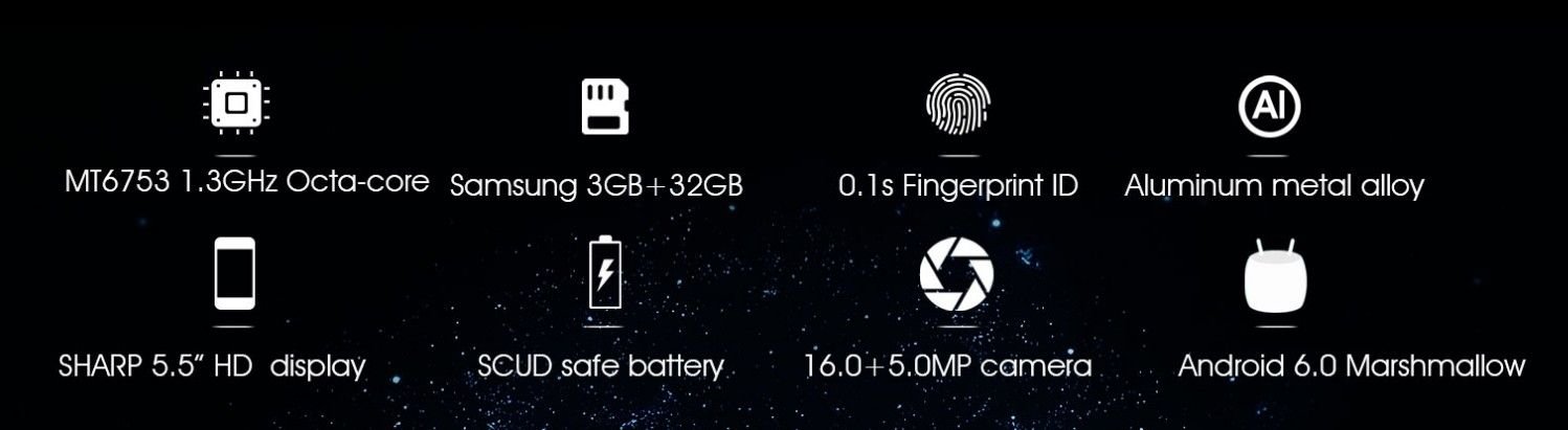 Der 5,5 Zöller mit HD-Monitor von Sharp wird von einem alten Bekannten angetrieben: der MT6753 1.3GHz Octa Core SoC arbeitet mit 3GB RAM und 32GB ROM Speicher zusammen; erweiterbar um 128 GB per Micro SD Karte.