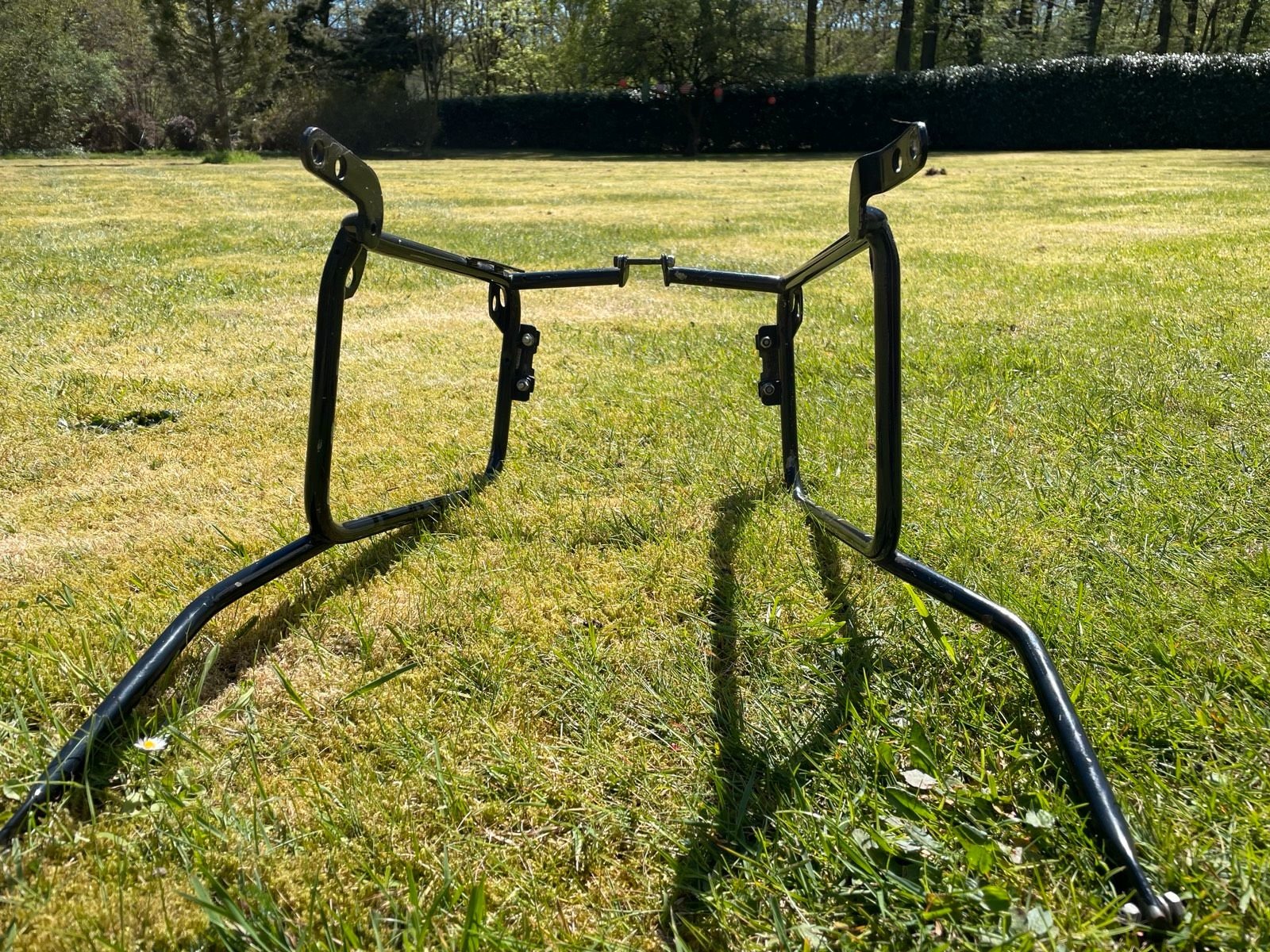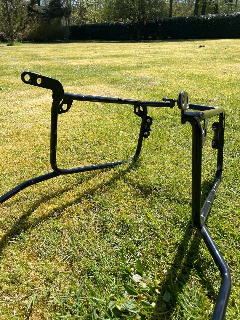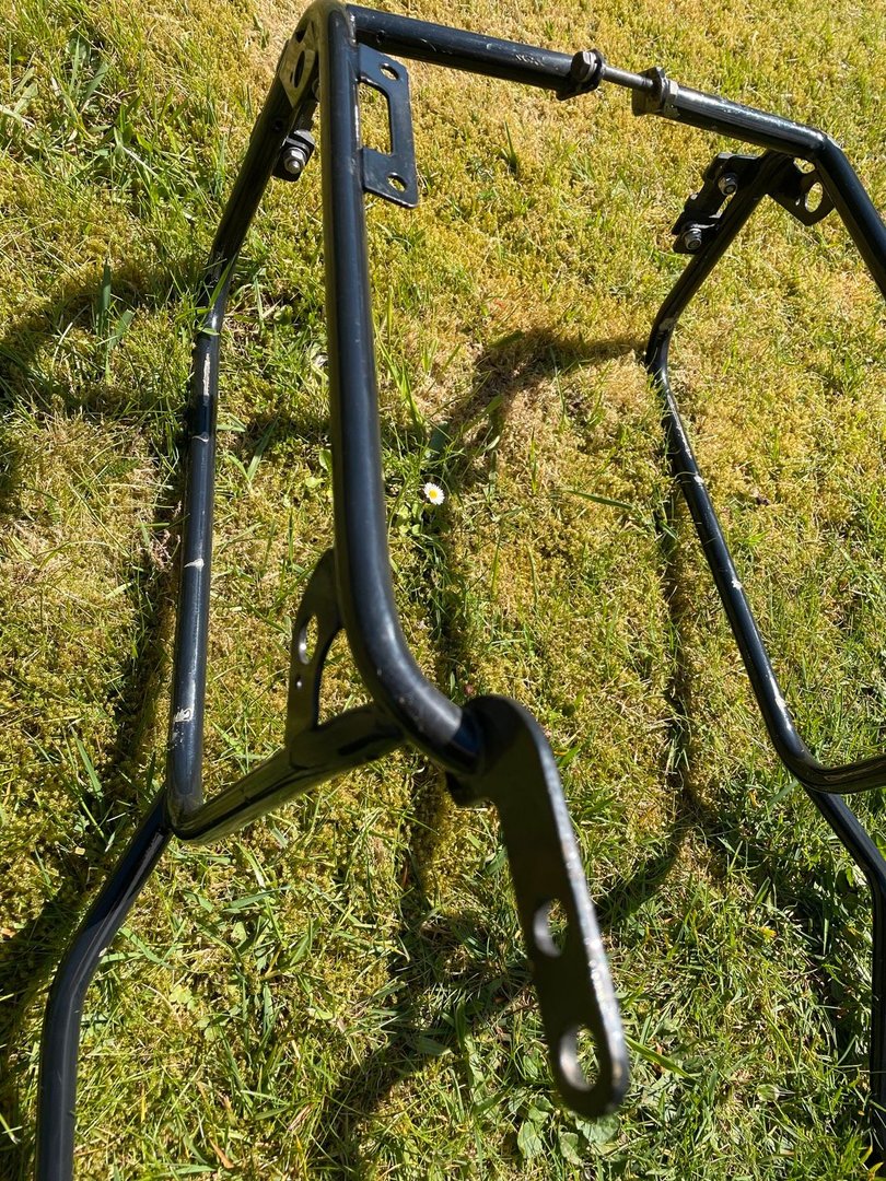 hier ein paar Bilder. Das Schöne daran - er hat schon etliche Punkte an denen ich ansetzen kann - also ggf. mit einer Metallplatte oder einem Verbindungsteil die Verbindung zum Motorrad herstellen kann - - eben via einer Verbindung.