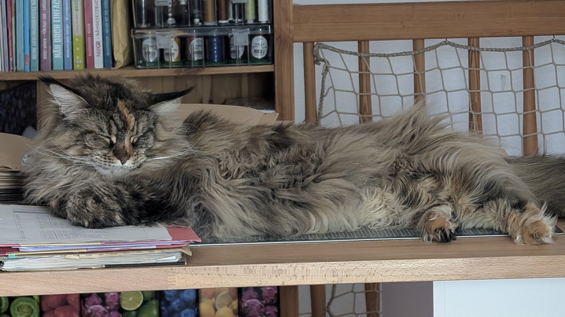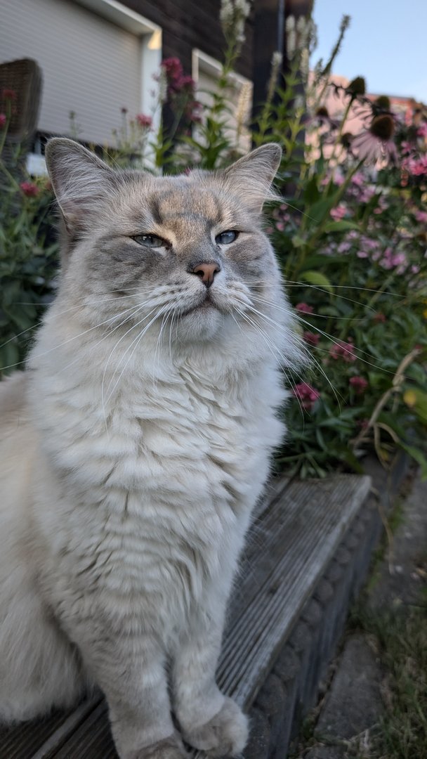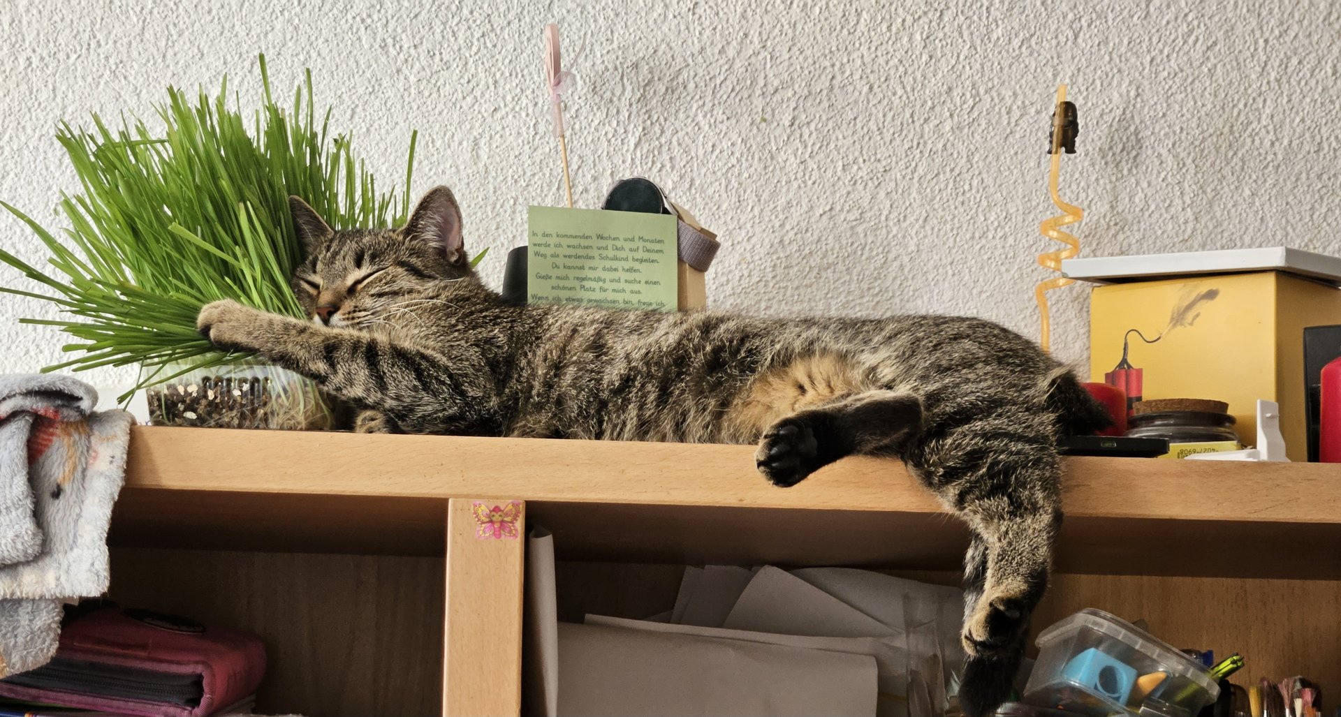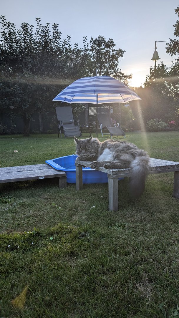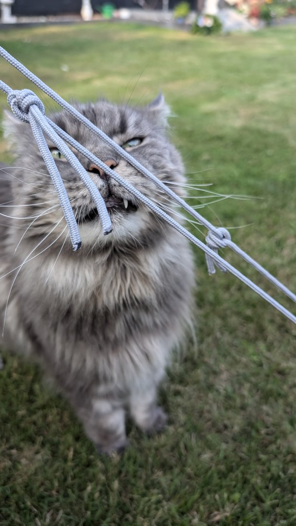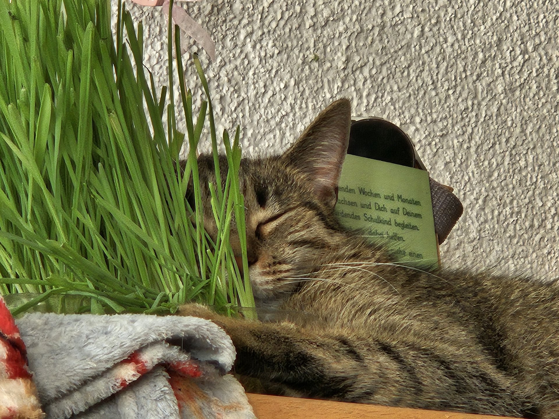Ottos Geburtstagsgeschenk vorab. In der Versandverpackung war auch Katzenminze. Hätten wir bis zum Geburtstag (Samstag) gewartet, hätte der Kerl das Haus abgerissen - Geduld ist keine feline Starke.