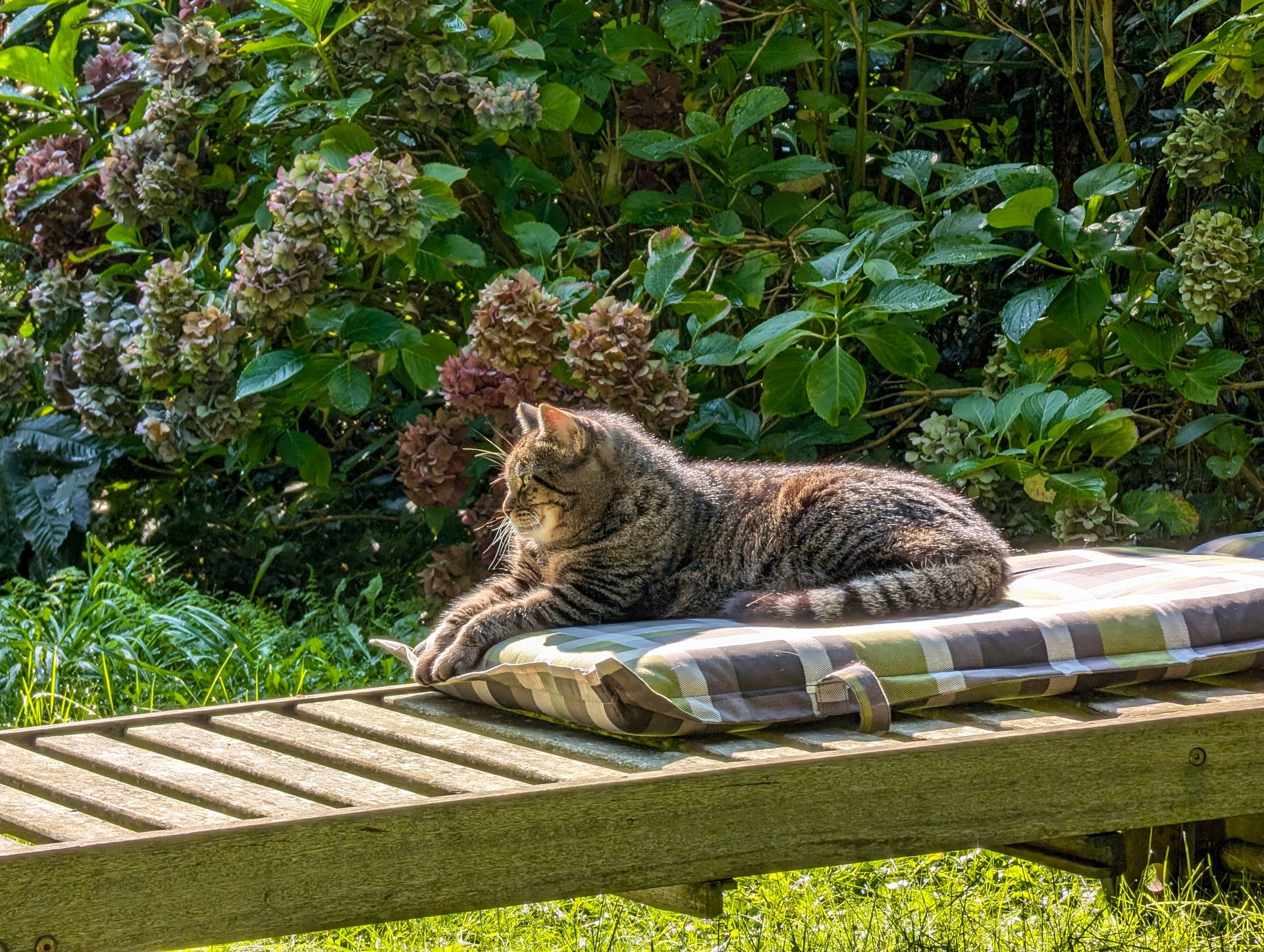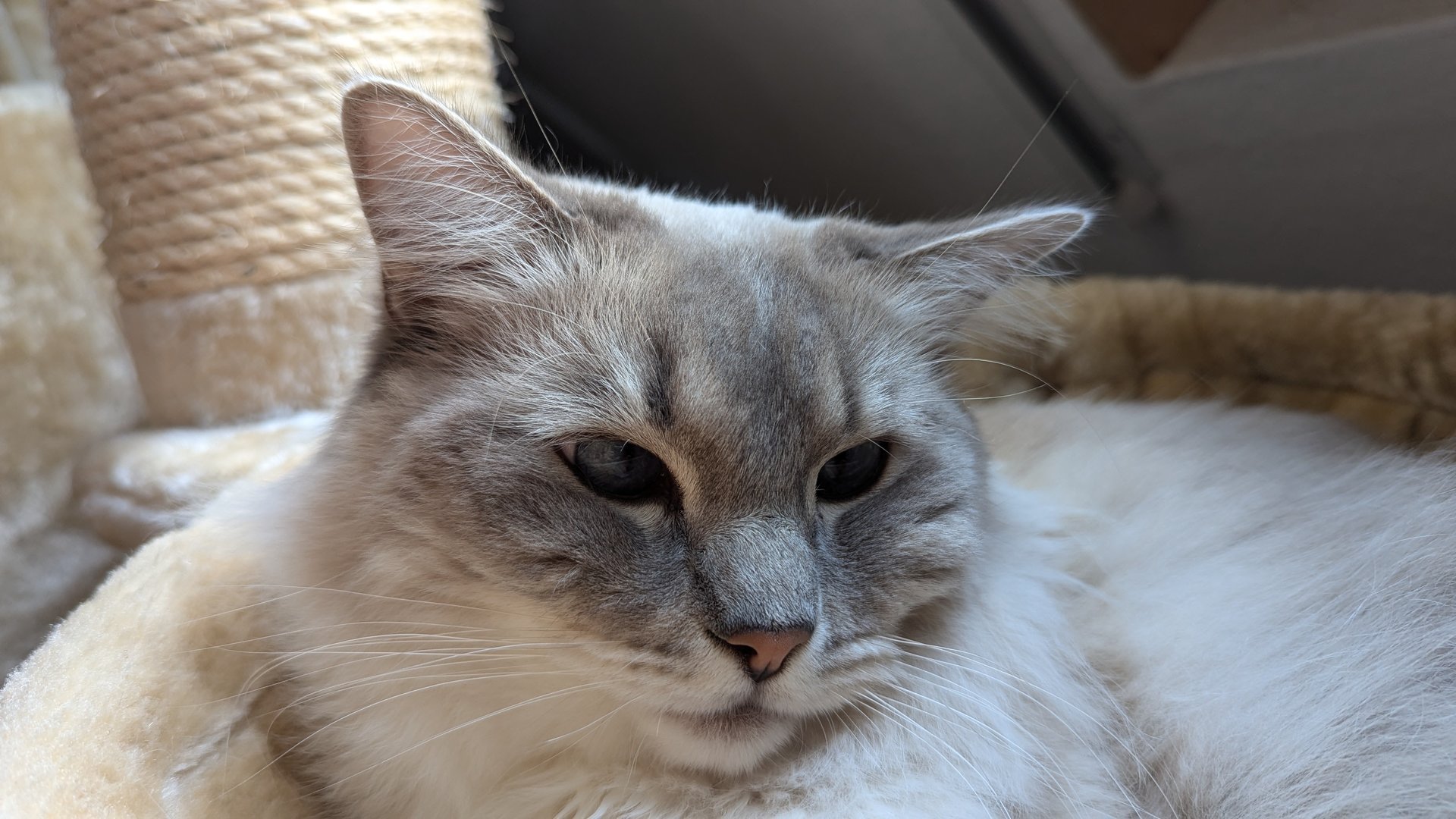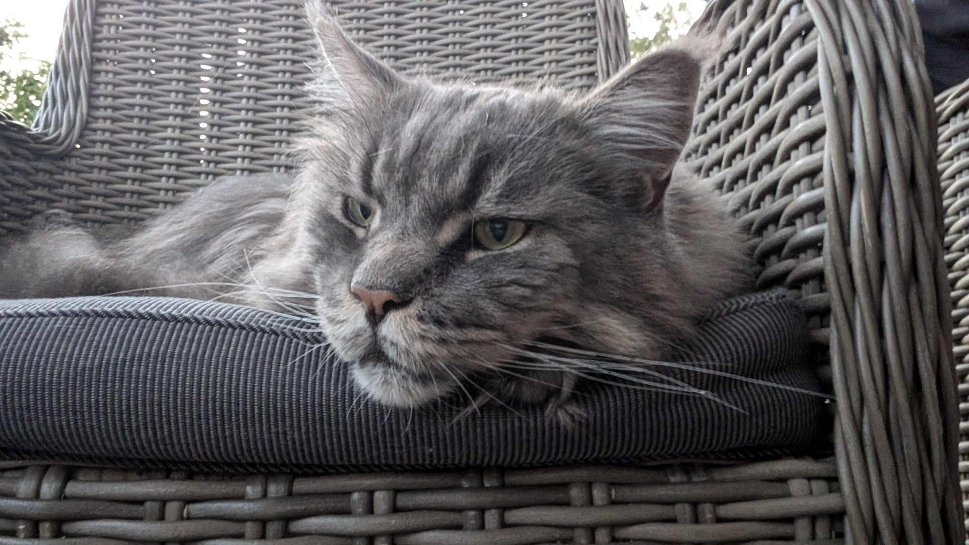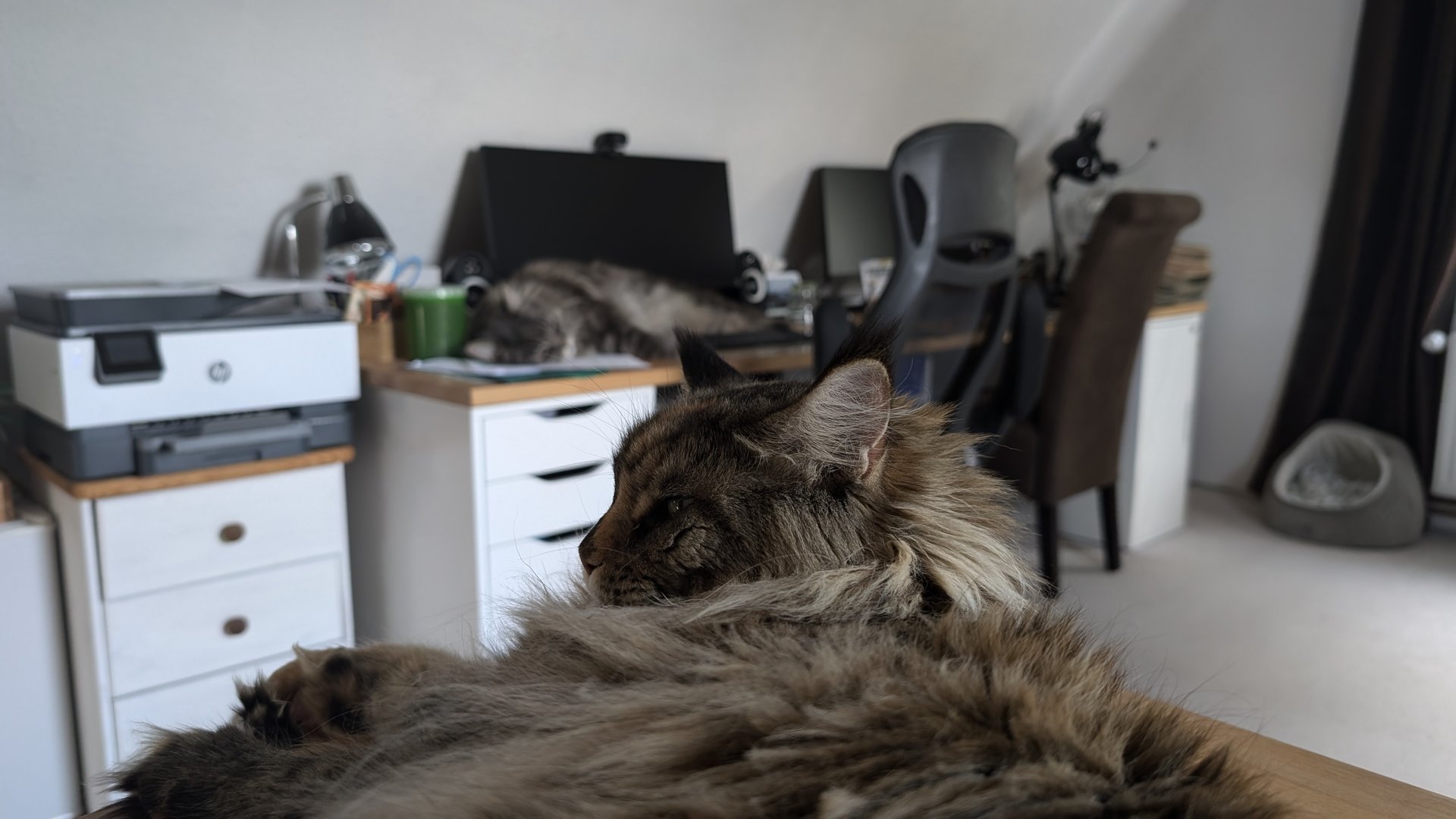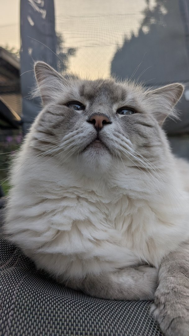 Ottos Geburtstagsgeschenk vorab. In der Versandverpackung war auch Katzenminze. Hätten wir bis zum Geburtstag (Samstag) gewartet, hätte der Kerl das Haus abgerissen - Geduld ist keine feline Starke.
