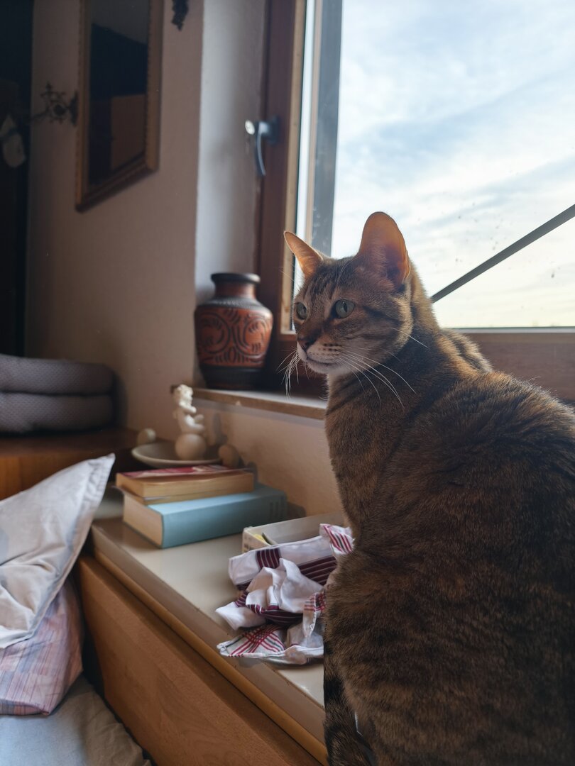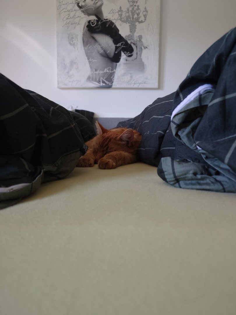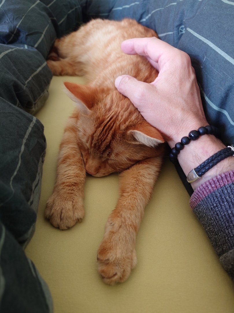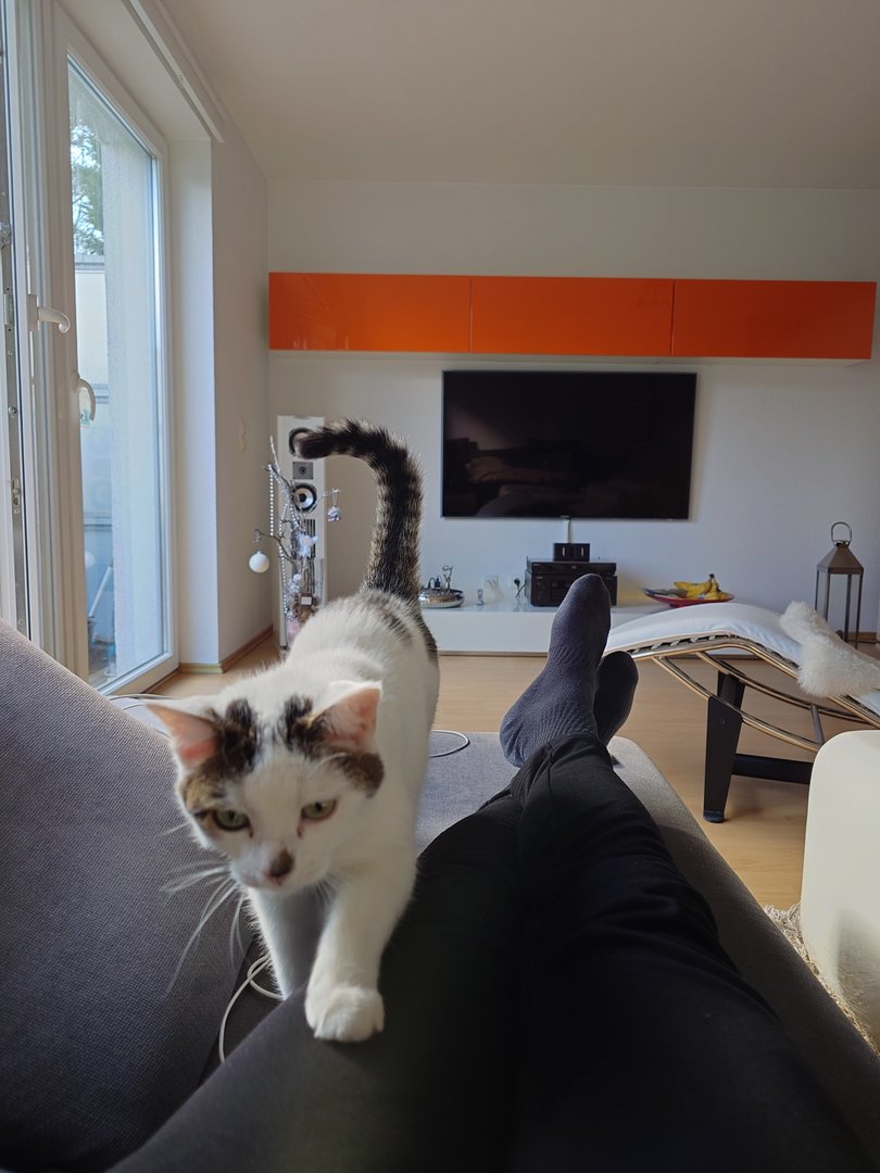 Prinzipiell gut für uns, sparen wir doch Zeit und Mühe, den Kater an uns zu gewöhnen, andererseits schlecht wenn er dann, wie unsere anderen Kater, irgendwann mal Freigänger wird und dann jedem Fußgänger auf dem Weg (nicht Straße) hinterher geht.-