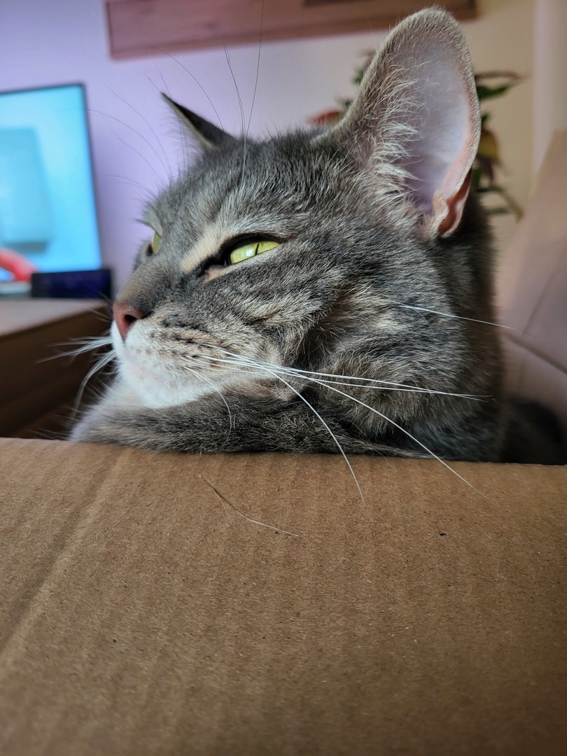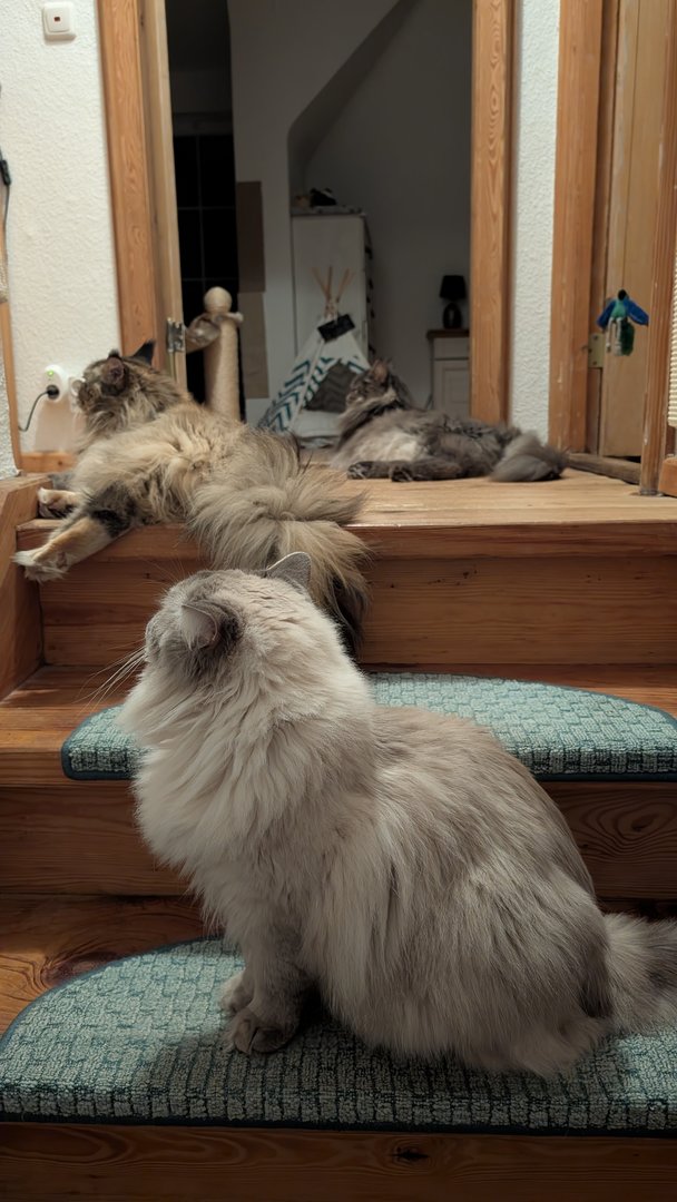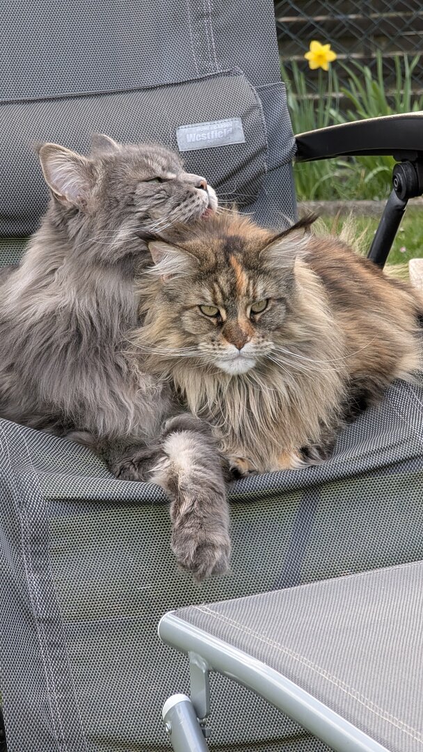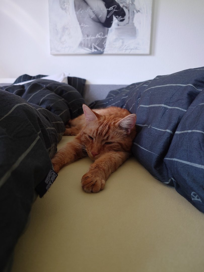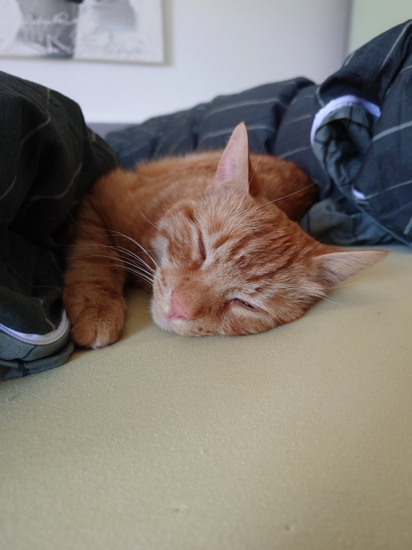 Prinzipiell gut für uns, sparen wir doch Zeit und Mühe, den Kater an uns zu gewöhnen, andererseits schlecht wenn er dann, wie unsere anderen Kater, irgendwann mal Freigänger wird und dann jedem Fußgänger auf dem Weg (nicht Straße) hinterher geht.-
