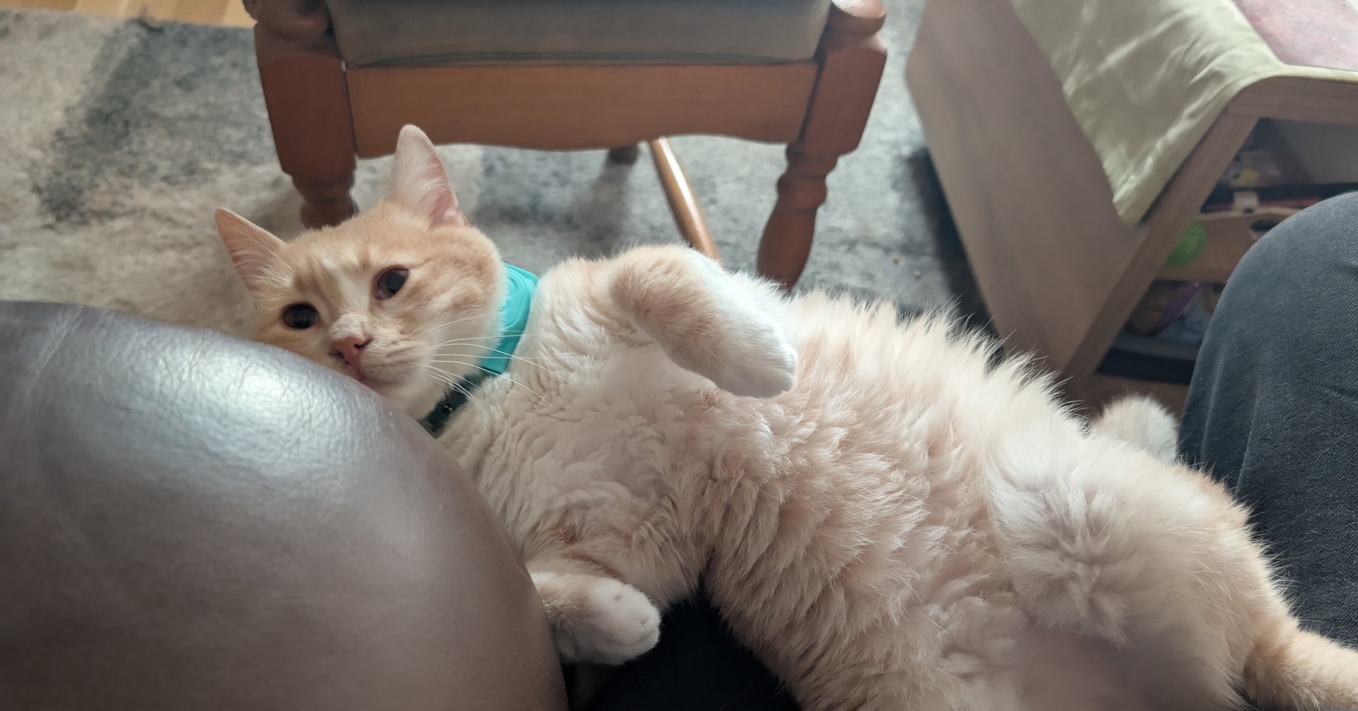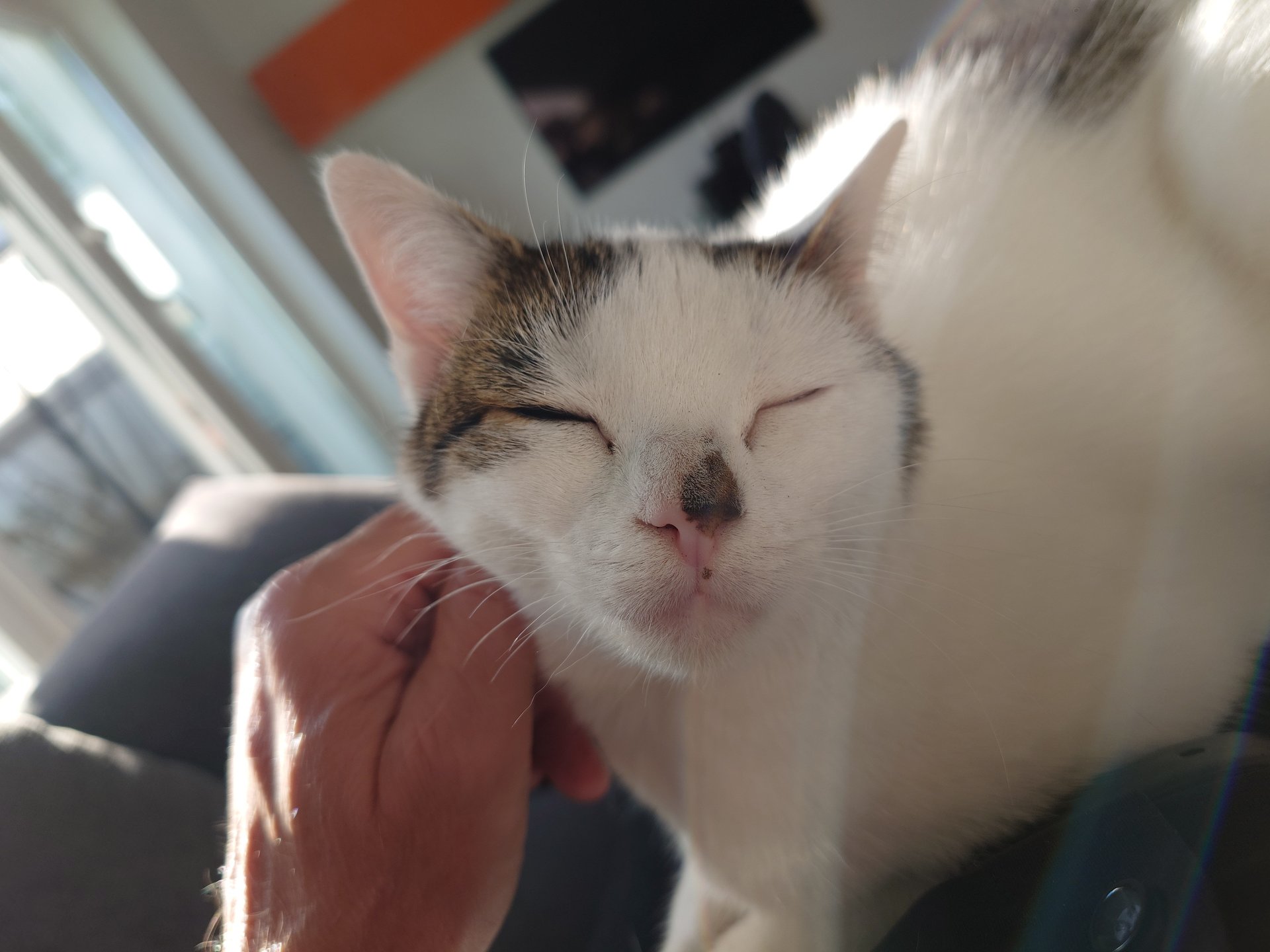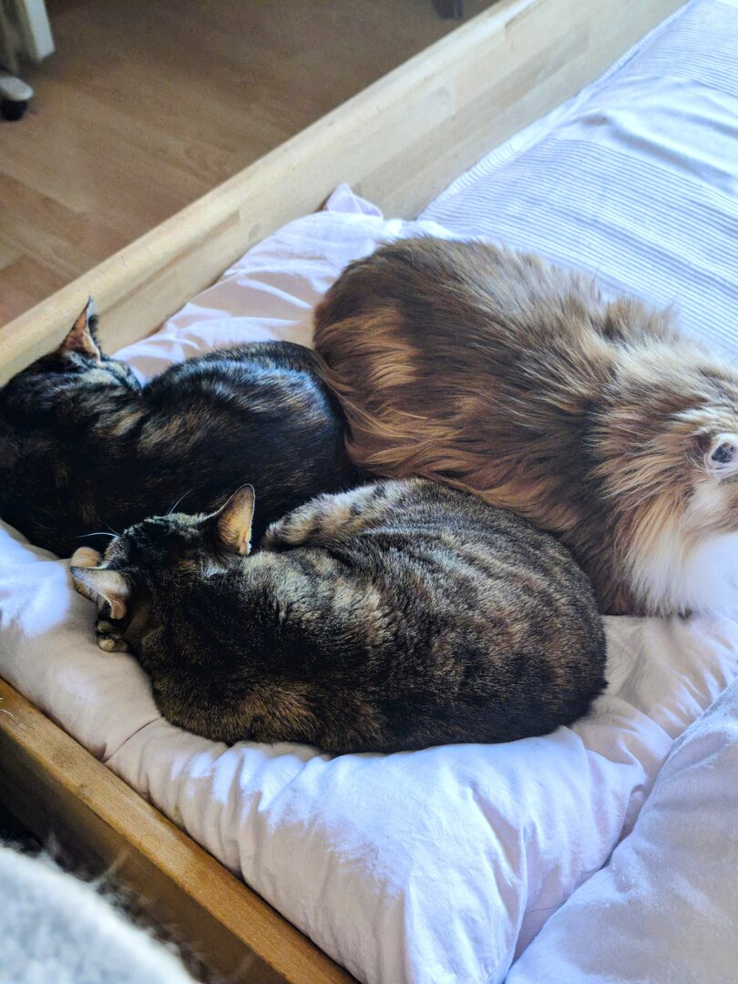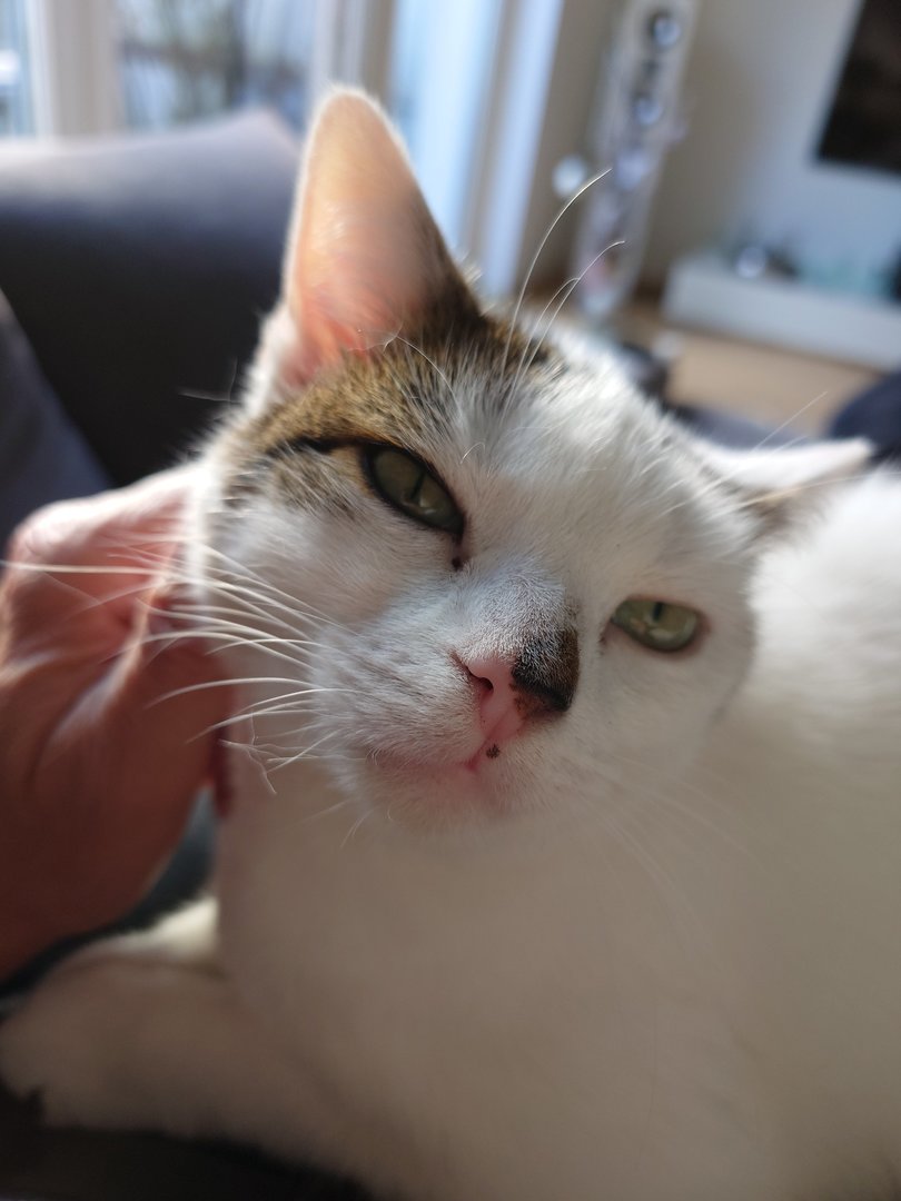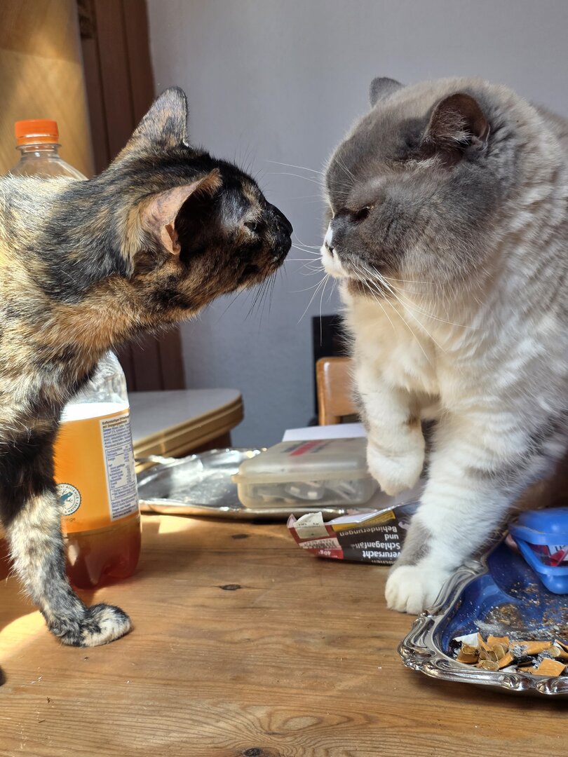 Unser Neuzugang "Lucky>", im Thread "Katze gerettet" näher beschrieben, ist sehr Mensch bezogen.