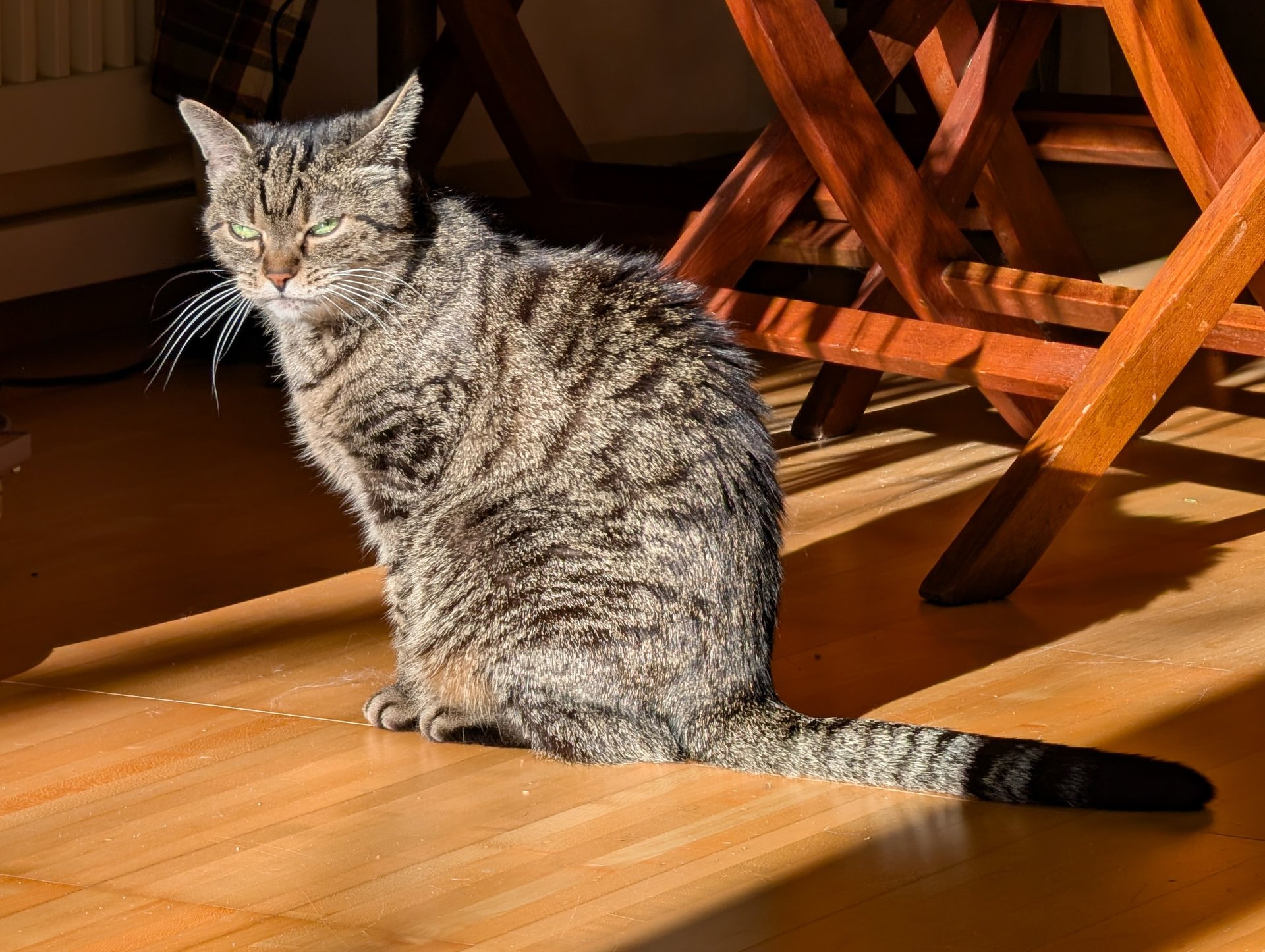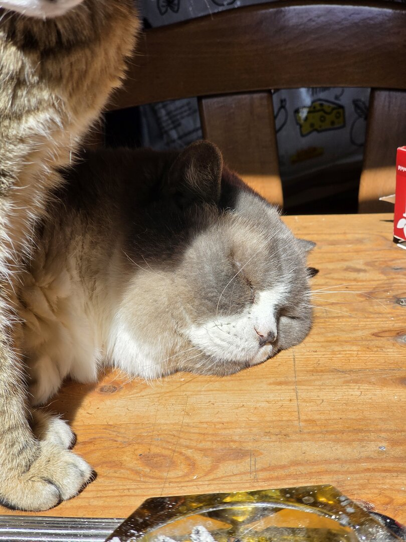 Von Geburt an an fremde Menschen gewöhnt ( er wurde als Hotelkatze in der Türkei geboren), ist es für solche Tiere unerlässlich sich schnell den Hotelgästen anzunähern um das eine oder andere Leckerlie zu bekommen und mit viel Glück sogar eine ganze Mahlzeit.
