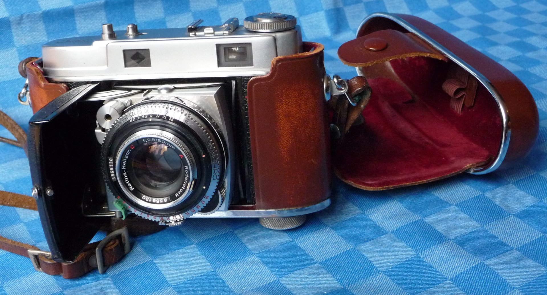 Aus echtem Leder, garantiert passgenau in schicken stallfarben, und man konnte durch Aufklappen fotografieren, ohne den Apparat aus der Hülle nehmen zu müssen.