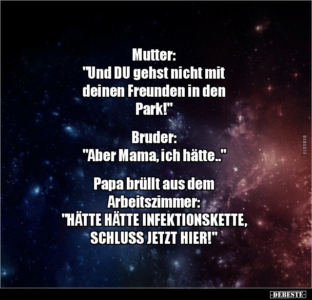 Ich kann auch aus dem Haus gehen und in dem Augenblick knallt mir ein Ast vom Baum auf den Kopf, denn ich wohne hier am Wald. Und jetzt? Besser zu Hause bleiben?