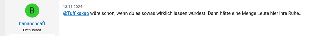 Die einfachen Tätigkeiten hast du ja schon übernommen. Da du von morgens bis abends pausenlos hier im Forum aktiv bist und umgehend auf jeden Beitrag reagierst, da kann deine berufliche Tätigkeit nur eine sehr einfache Tätigkeit sein, ohne viel Anspruch, und schon gar nicht mit Verantwortung. Wenn man sich auf seinen Job konzentrieren muss, dann kann man nicht pausenlos hier online sein, so wie du.Regentanz schrieb:Es muss auch Leute wie dich für die einfachen Tätigkeiten geben.