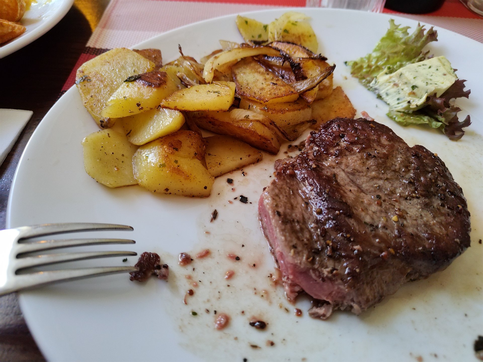 RyanStekken schrieb:Blockhaus. Saftiges Steak mit Rahmsoße und Knoblauchbaguette.
